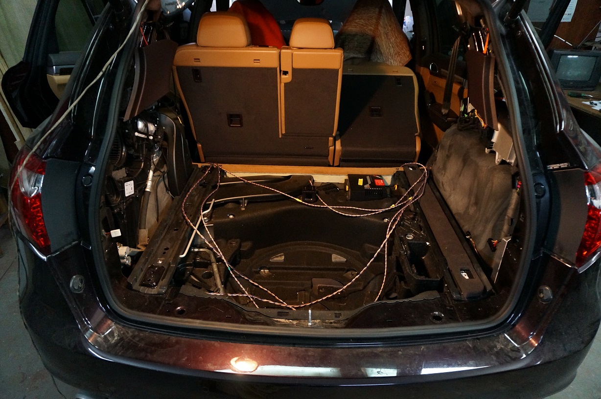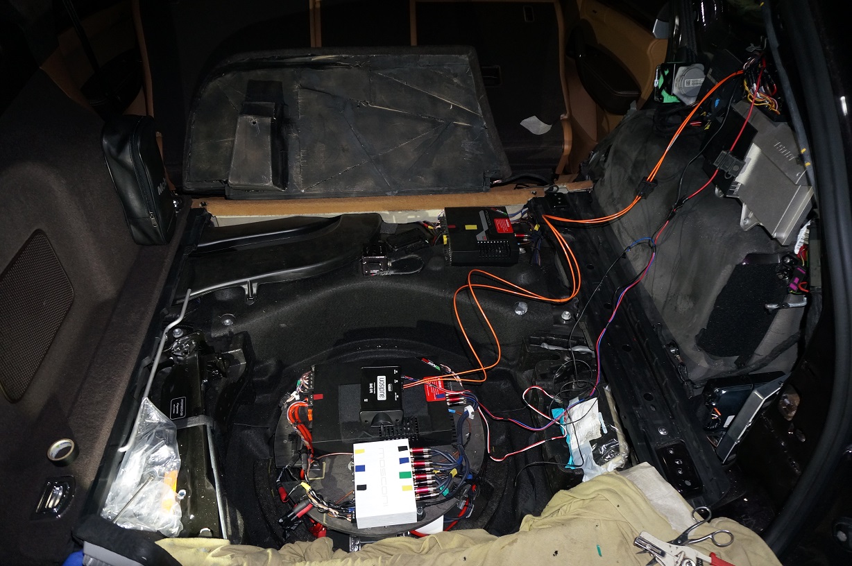 Примерно пару лет назад клиент поставил задачу: в семье есть Porsche Cayene , кажется 13-14 годов и BMW X5 последнего года выпуска. Так вот, BMW звучит лучше, чем Porsche , можно ли последний подтянуть ? Послушал обе. что там , что там мне не понравилось: звук не сфокусированный, гуляет по всей машине, бас размазанный , естественно не глубокий и т.д. В общем долго и бестолку здесь рассказывать. Для примера, посадил хозяина в свою ( тогда еще HX-D2 стоял), на него произвело впечатление и принялись за работу, кстати, машина в плане инсталяции, ОЧЕНЬ хороша, все динамики в штатные места. Ну усями и сабом пришлось повозиться , не хаватало места, обьема и т.д.