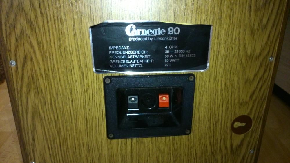 продам немецкую трехполосную акустику Liesenkotter CARNEGIE 90, мягкие глубокие НЧ, прозрачные СЧ, приятные ВЧ без цоканья, НЧ 25см, 4 ом, частота 38-25000 гц, музыкальная мощность 80 вт, 22л, высота 50см, ширина 32см, надежные жесткие грили-защита от животных и детей.