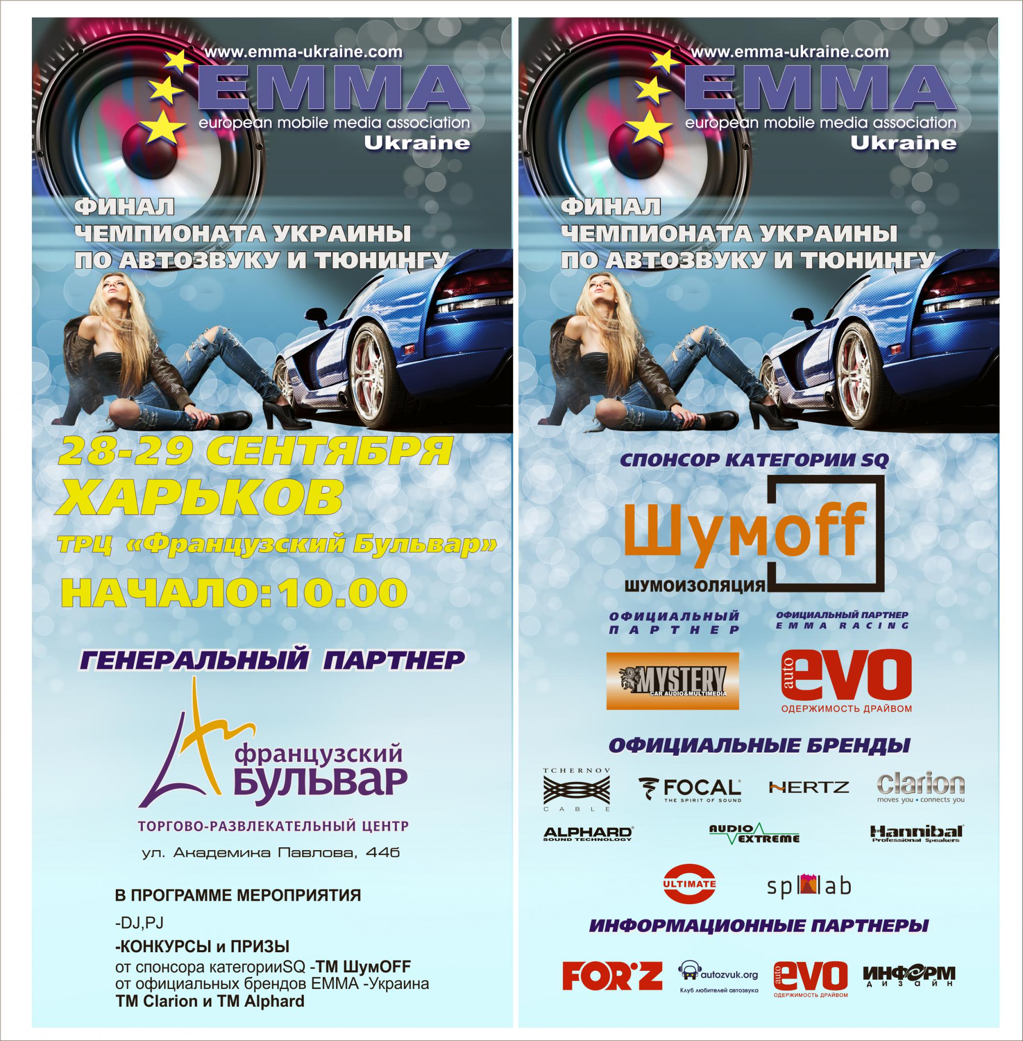 Финал Чемпионата Украины по автозвуку и тюнингу ЕММА состоится 28-29 сентября 2013 г. в Харькове.