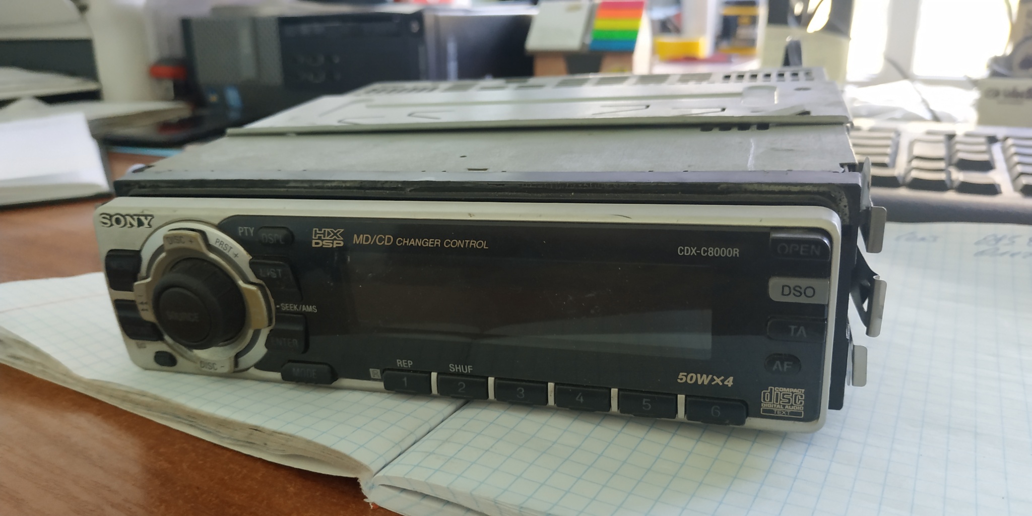 Подсветка кнопок янтарная/зеленая; Съемная передняя панель; Разъем ISO/JASO; Уменьшение громкости при телефонном разговоре; Джойстик Safety Commander и ИК пульт ДУ RM-X91 (поставл. отдельно); Многоцветный дисплей; Многоязычные сообщения. Выходная мощность встроенного усилителя: 50 Вт х 4 Линейные выходы: 2 Проигрыватель компакт-дисков CD-текст: Есть Тюнер Предустановки тюнера: 18 УКВ /6 СВ/ 6 ДВ Тюнер: SSIR-EXA ABC Функция RDS/EON: Есть Состояние на фото, все работало, лежит пылится в гараже лет 5 уже, отдам за 1000грн в хорошие руки комплект магнитола с кабелем, 2 рамки, пульт территориально Киев, Троещина Связь ЛС |