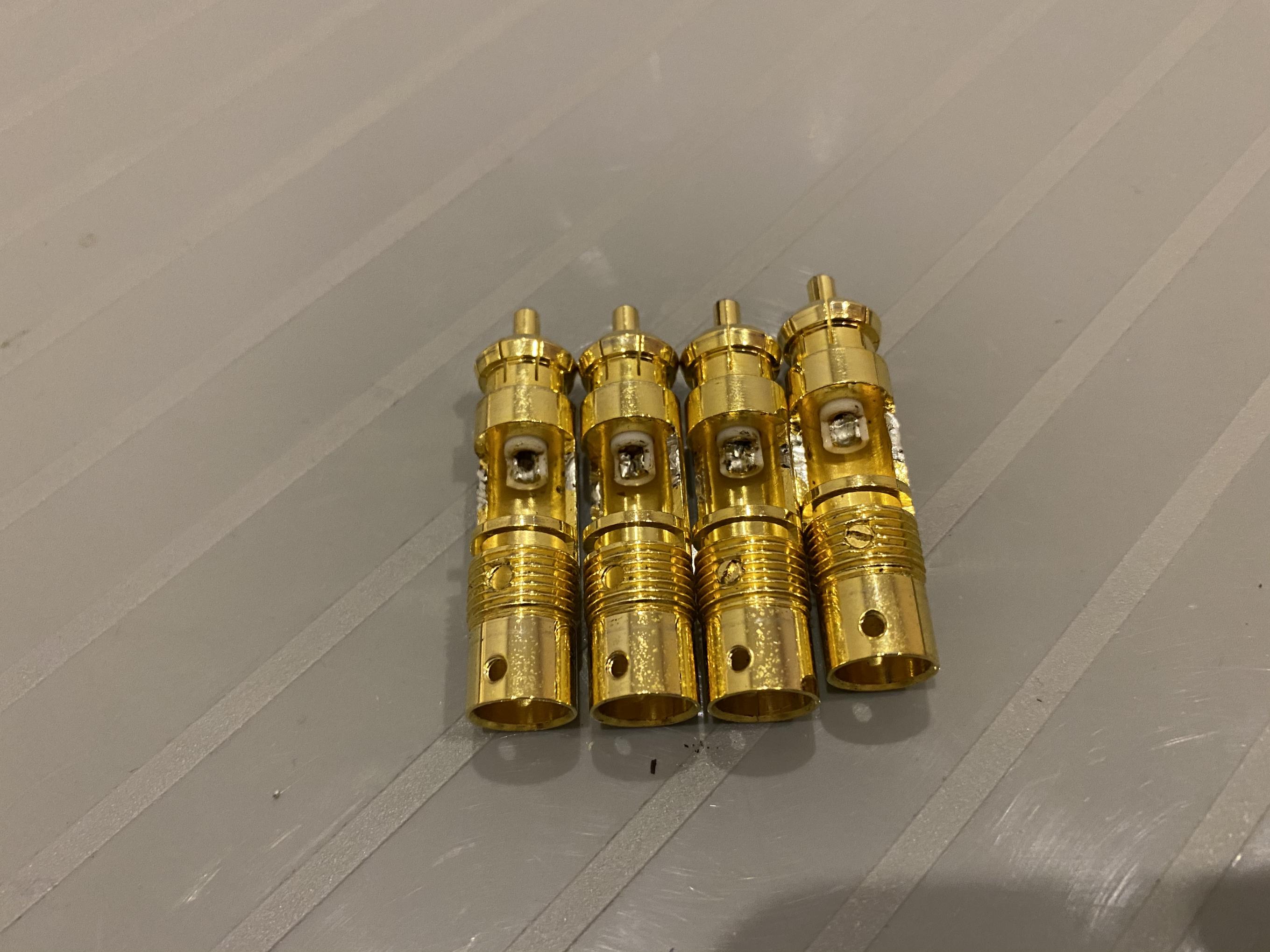 Продам отличные rca, легчайшее Б/У окуратно припаяны и отпаяны обратно, втулки не подплавленны. Латунь, позолота, все как положенно. Ценник видится 400грн. за 4 шт.