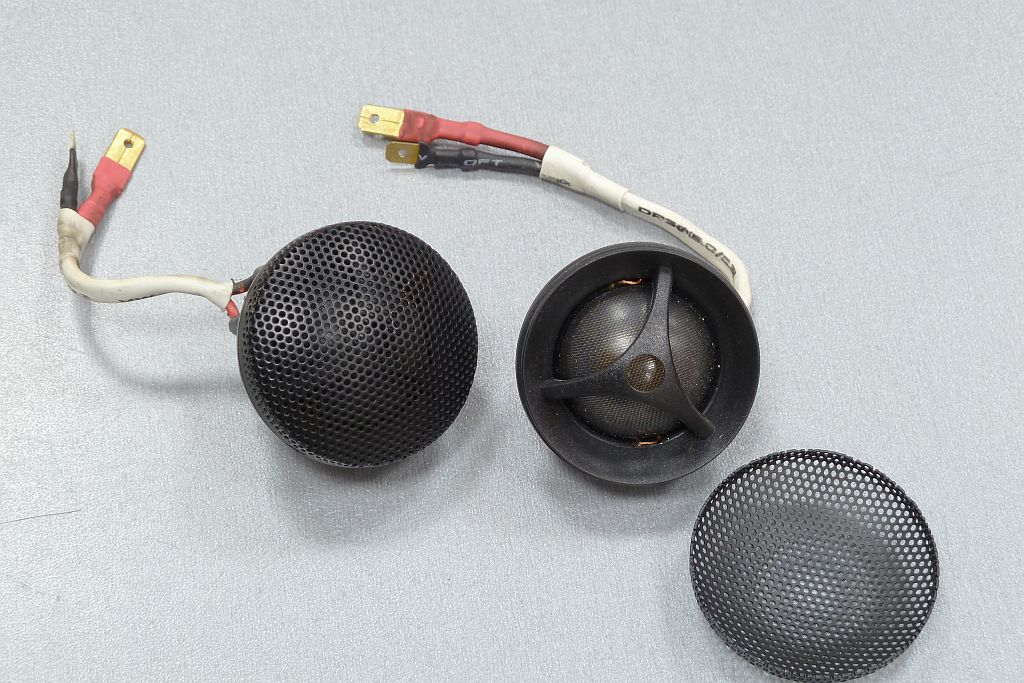 Твитеры Morel MT23, одна пара, чуть-чуть б/y (отстояли лето в стойках, брала новыми). Состояние на 4-. Пищалки вставлялись в специально выточенные стаканы, есть следы установки. На качество звука не влияет.
