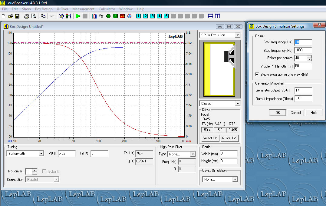 Обратите внимание, что пятёрочка, даже на номинальной мощности (75 Ватт), не вылазит за пределы своего линейного хода, т.е. в 5л ей даже сабсоник не нужен. Суть того поста была в том, что по какому-то одному параметру, будь то калибр или резонансная частота или добротность нельзя оценивать динамик, только по соотношению этих параметров между собой. Поэтому совет топикстартеру: покупай компоненты не глазами, а головой. |