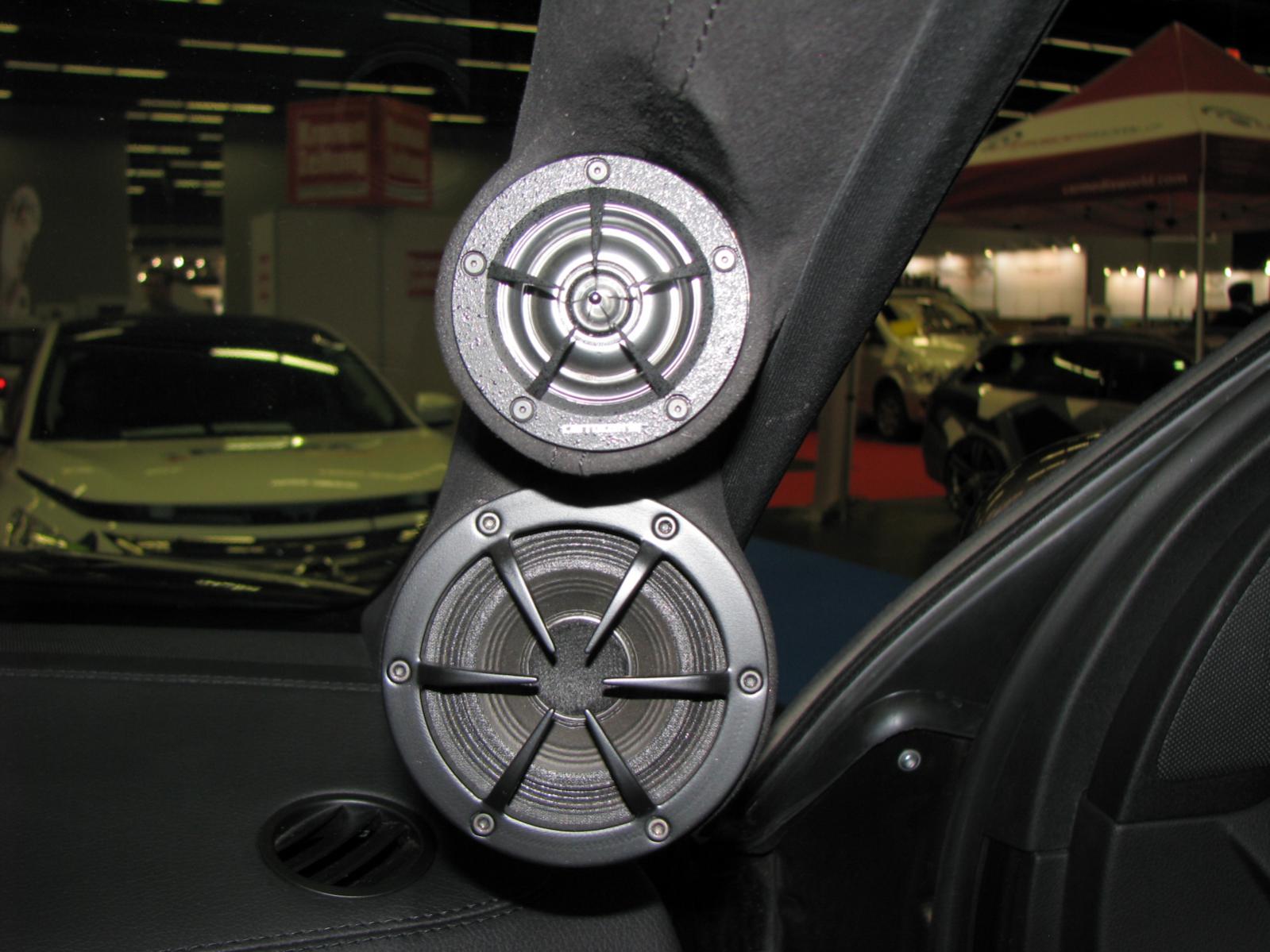 Нереальный инсталл, очень оригинальное решение по стойкам - ВЧ утоплены заподлицо, вся стойка обтянута акустически прозрачной тканью. Выглядит как полный СТОК с завода ![]()