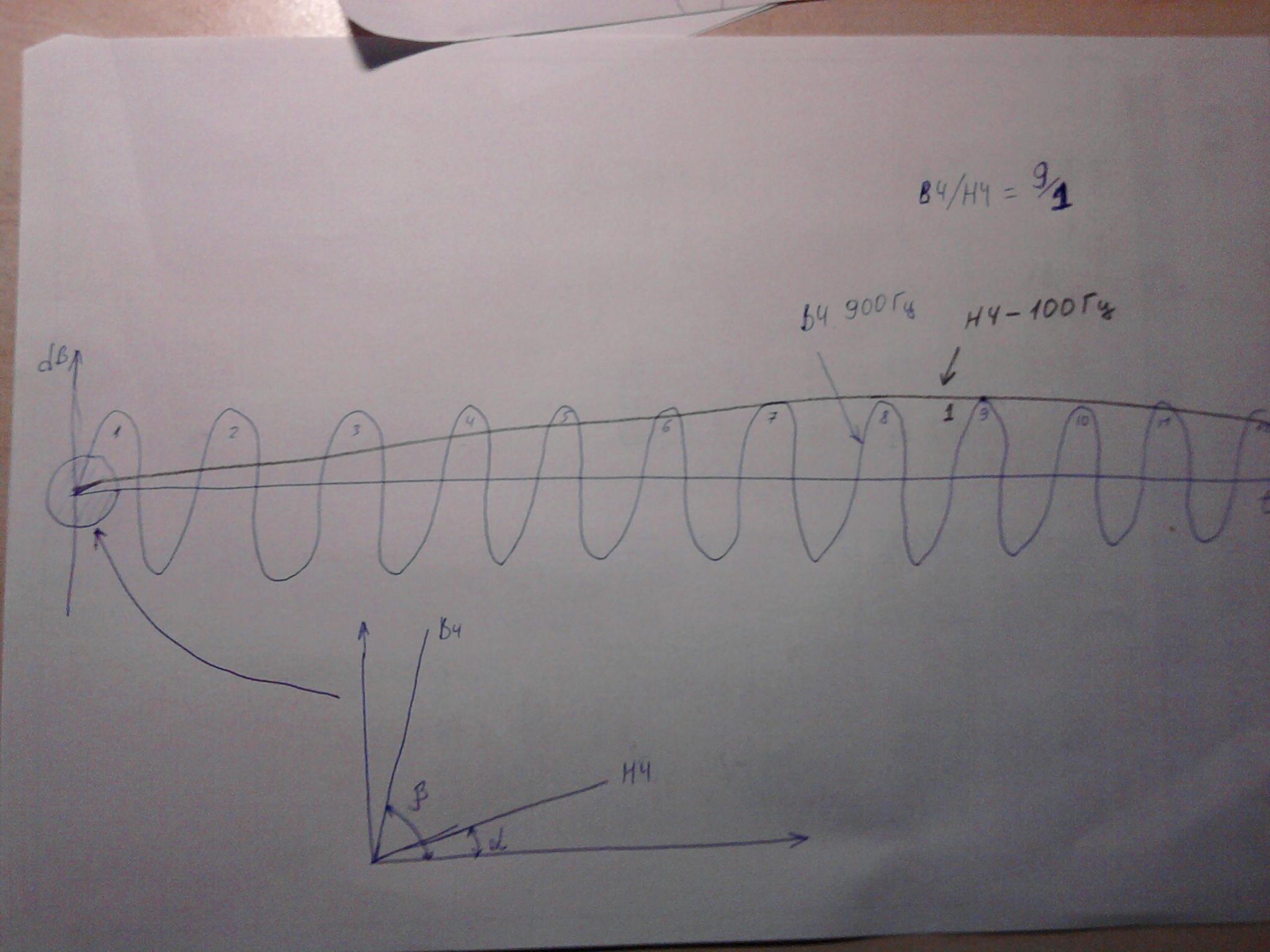 А теперь посмотри на мое изобразительное искуство и ты увидишь, что даже при сравнительно небольшой разницы в частотах 900Гц и 100Гц разница в нарастании фронтов для Нч и ВЧ будет колоссальной, я уже не говорю о частотах 50Гц и 5000Гц.