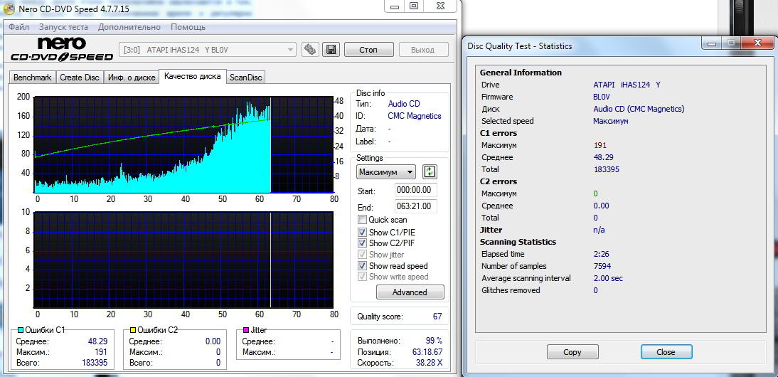 (допустимый BLER у Audio-CD 220. то есть с подопытными все хорошо)