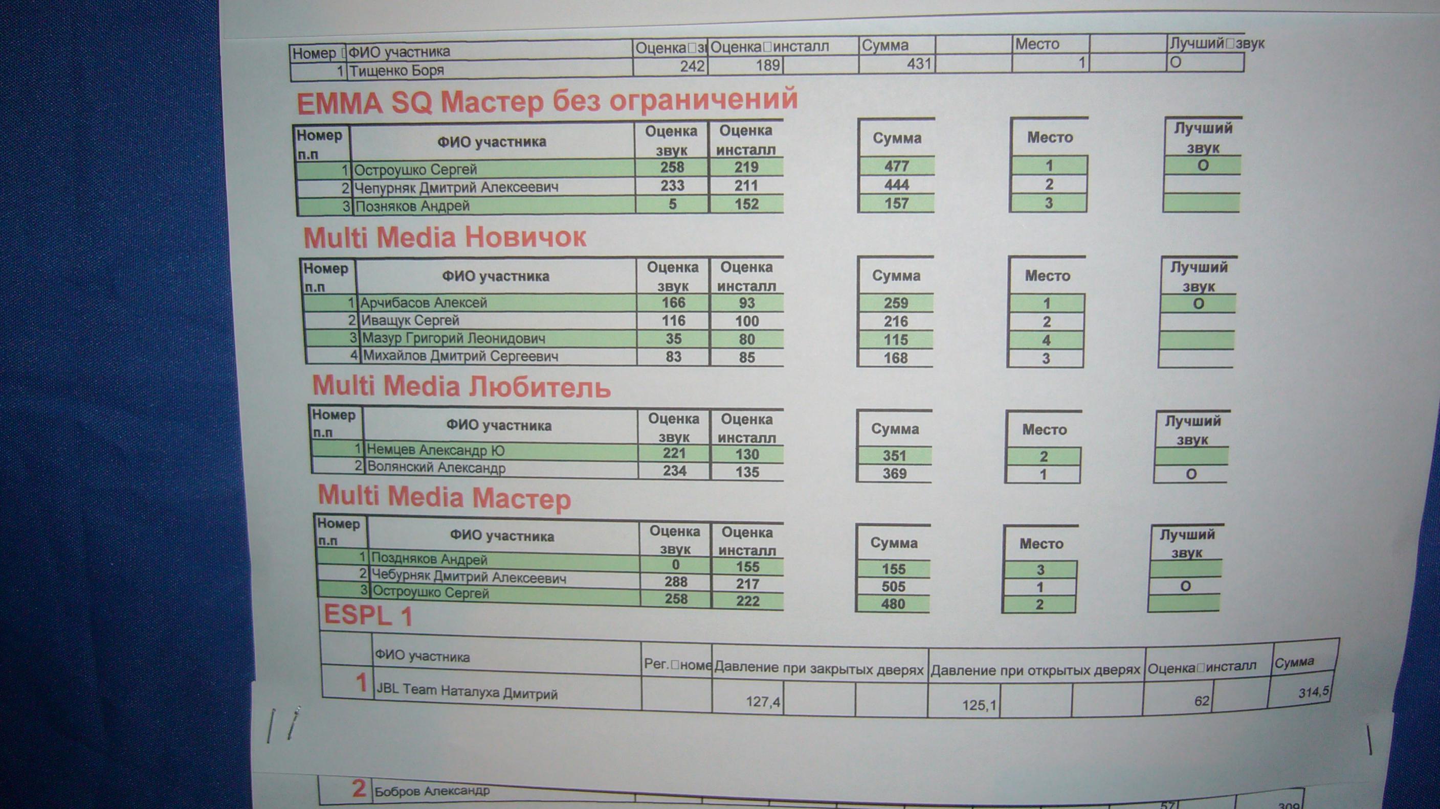Особенно понравилась оценка за звук 3 место МАСТЕР БЕЗ ОГРАНИЧЕНИЙ.