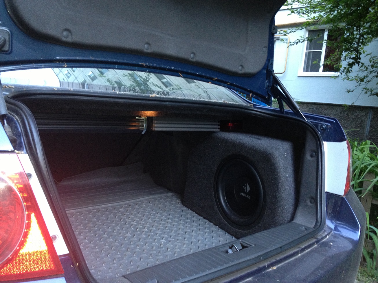 Саб уже больше года стоял в одном месте. Когда двигал, чтоб пофотографировать - обнаружилась потертость на одном из углов (на 4-м фото видно). Если это важно - то гривен 100-150 я скину... хотя установленный в багажник он выглядит как новый.