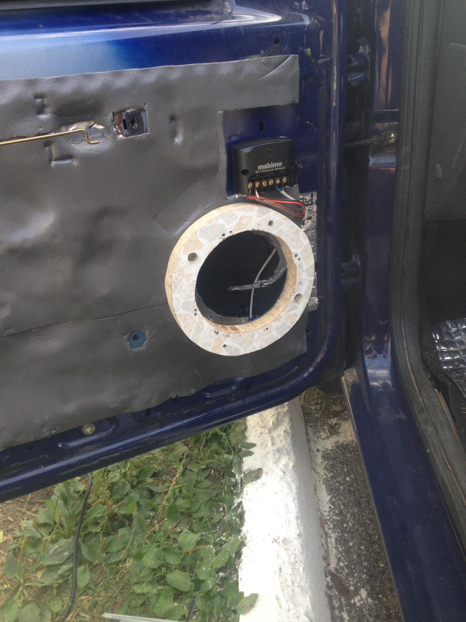 В очередной раз переделал что было. Значит сейчас пищи на прямую от задних каналов магнитолы работают через коднеры 4.7мкф(думаю больше ставить). Динамики в дверях работают через паскросы(второй порядок 3.5кгц) от того же усилителя. Двери все таки были мною успешно порезаны електролобзиком и был перепилен подиум "из того что было", это столешница кухонная, толщиной 3 см, прикручена к дверям четырьмя болтами под ключик на 10. Далее все все облепил виброй в нахлест. Обшивку еле натянул)) Последний раз редактировалось neDinamovec; 19.09.2014 в 01:22. |