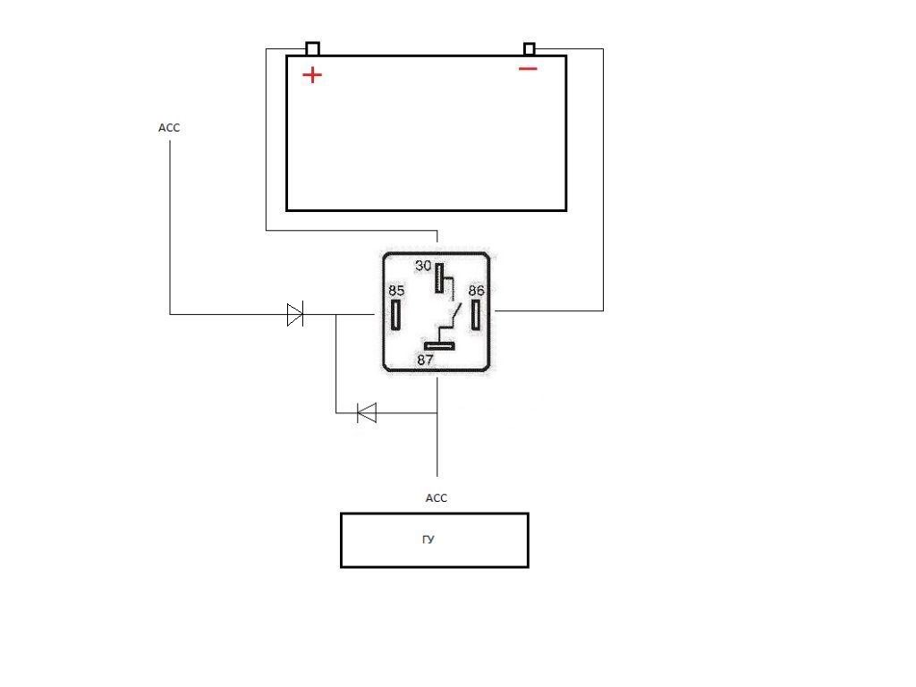 Да ребята вы что - левый диод пропускает напряжение на мафон - он в свою очередь включаеться, появляеться +12 на ремоуте и закольцовуеться через правый диод - на практике включили АСС - включили мафон - выключили асс - мафон работает до того как не выключим его с панельки!