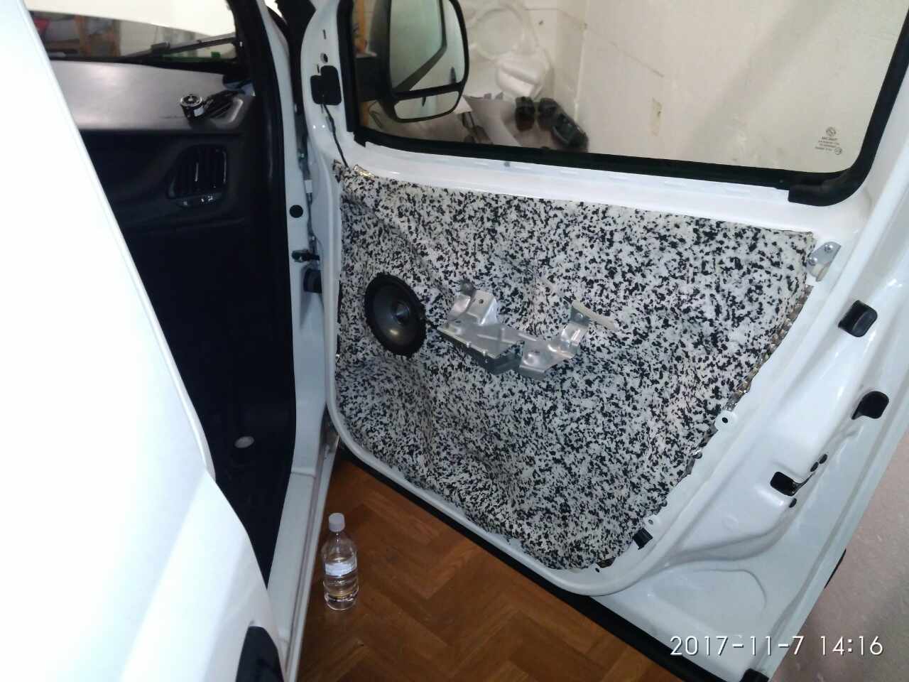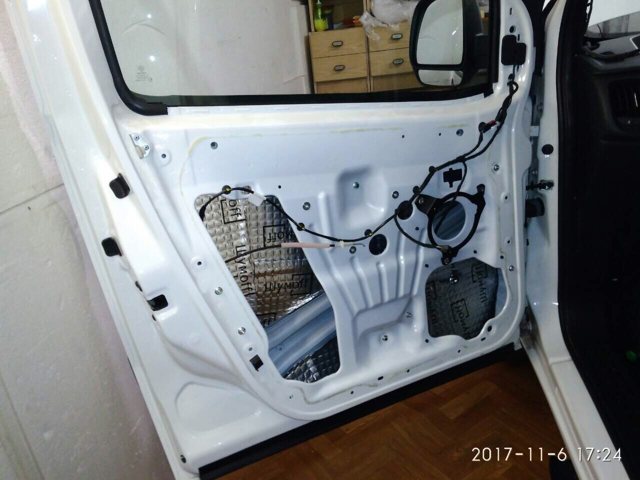 Большие отверстия двери, перед проклейкой виброй, необходимо было закрыть жёстким листовым материалом (аллюминием, фанерой, алюкобондом или т.п. материалом)