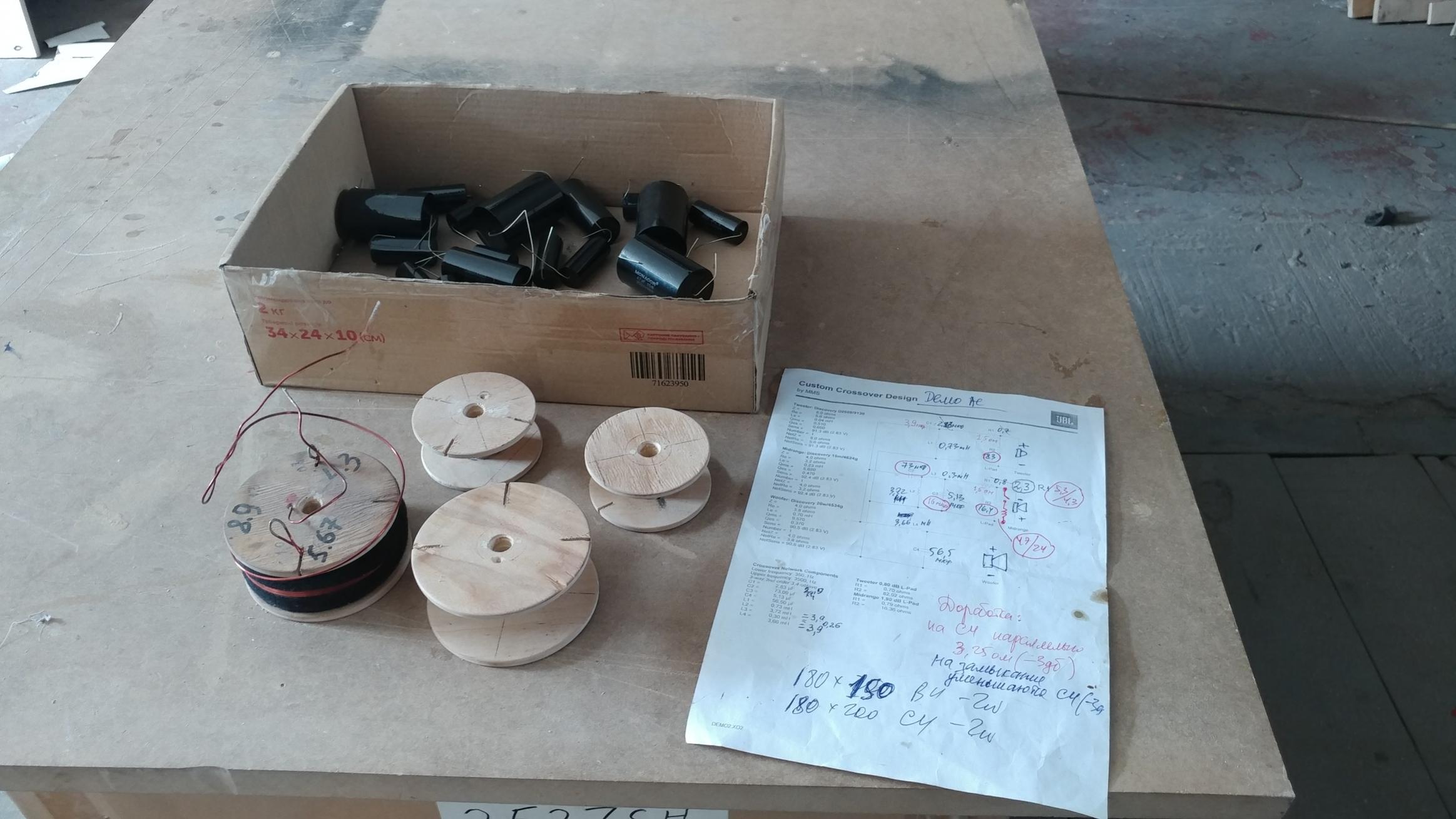 Идет кропотливая работа по оформлению внешнего вида корпусов АС, намотка и подгонка катущек индуктивностей