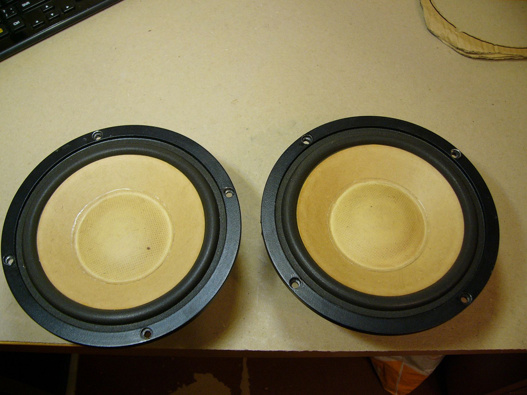 050 322 53 17 Мидбасовые динамики Sonido SCW-175. Могут работать в двери. Не ремонтировались, не перегружались. В отличном рабочем состоянии. Лежат без дела. Диаметр корзины 175мм, диаметр магнита 102мм, глубина габаритная - 79мм. Легкий бумажный дифузор; Литая корзина; Медное кольцо в керне для выравнивания импеданса; Характеристики: Fs - 51.5 Hz Mmd - 9.11g Le - 0.5mH Vas - 26.4 liter Re - 6.8 om Qts - 0.372 Qes - 0.454 Qms- 2.08 |