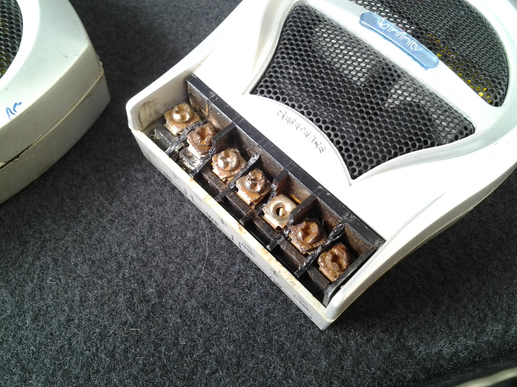 Полный комплект.в ремонте небыли.работают на 5.кросы были не правильно установлены,в следствии чего поржавели зажимные винты.при попытке их разкрутить были повреждены перегородки(см фото).сейчас все откручиваетца,на звук никак не повлияло.грили не устанавливались.в комплекте есть два вида установочных чашек под твитера.поедет новой почтой. Цена 750грн.тел:067-789-95-50.Слава. Фото добавлю вечером. Последний раз редактировалось -слава-; 01.11.2012 в 20:17. |