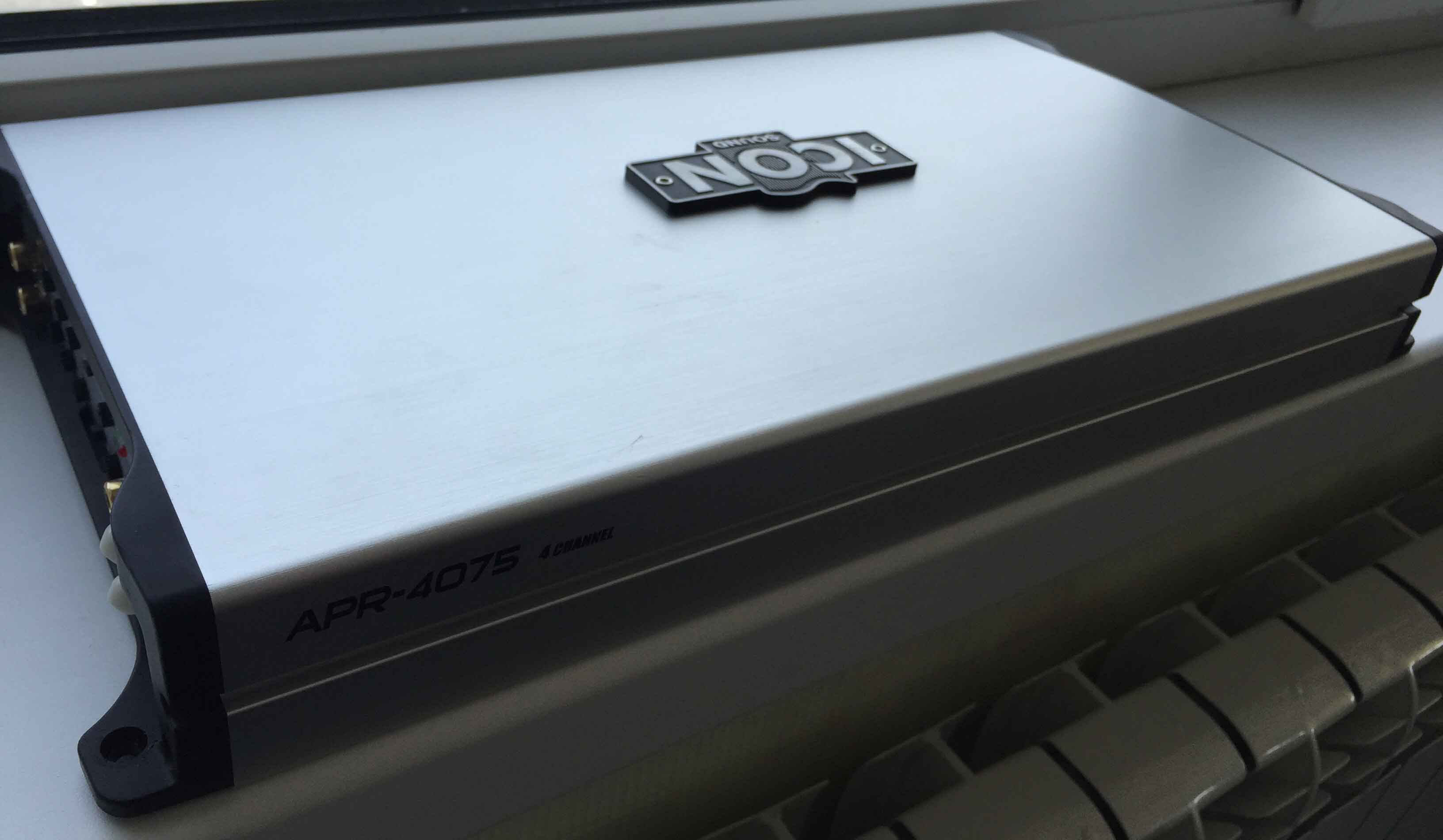 Автомобильный усилитель Icon APR 4075 в отличном состоянии, есть несколько незначительных царапин на задней стороне усилка.