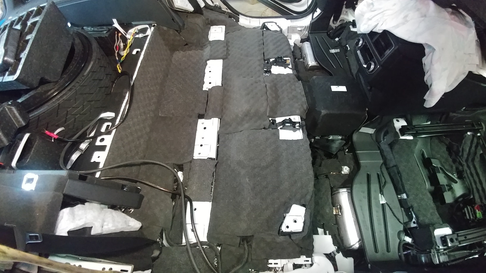 Пришло время прервать ЛЮБИМОЕ занятие ( проектирование и изготовление домашней акустики)))) и заняться …автозвуком. Хорошо, что проект очень кратковременный ( всего 6 раб.дней , у клиента приближался собственный день рождения!!! ) , но сделать надо было много: виброшумоизоляция салона , акустическая подготовка передних дверей и монтаж 3-х компонентной аудиосистемы с сабом, процессором. Audi Q7 очень тихая машина даже в заводском варианте, поэтому багажник, потолок и задние двери не шумоизолировали… А на пол салона и в передних дверях применили материалы премиум класса : Aero Plus ,Biplast Premium , Green Flex.