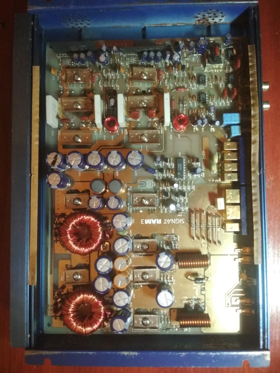 Немецкий высококлассный усилитель Signat RAM 3 MKII. Топовая линейка у фирмы. Редкий в наших краях. Очень музыкальный аппарат. Работает в режиме приближающемуся к классу "А", то есть максимально динамичный и мелодичный. Отличный контроль. Хоть на саб, хоть на мид или в полную полосу. Лучше всего проявит себя на сложных композициях и жанрах. Номинальная мощность: 2 х 150 Вт Номинальная мощность (мост): 1 х 450 Отношение сигнал/шум: 105 dB Демпинг-фактор: 800 Номинал предохранителей: 2 х 30 А Размеры 300 x 230 x 57 Вот обзор 4-канального собрата http://www.автозвук.рф/az/2000/07/p66-79-sig.htm Вот замеры мощности http://amp-performance.de/157-signat-ram-3-mkii.html На корпусе есть следы коррозии. Внутри все в идеале. Без ремонтов, полностью рабочий. Итальянское подключение с одной стороны. Также могу доукомплектовать набором для подключения (7 метров медного кабеля питания сечением 25 мм2 и качественный межблочный кабель из микрофонного кабеля): +500 грн |