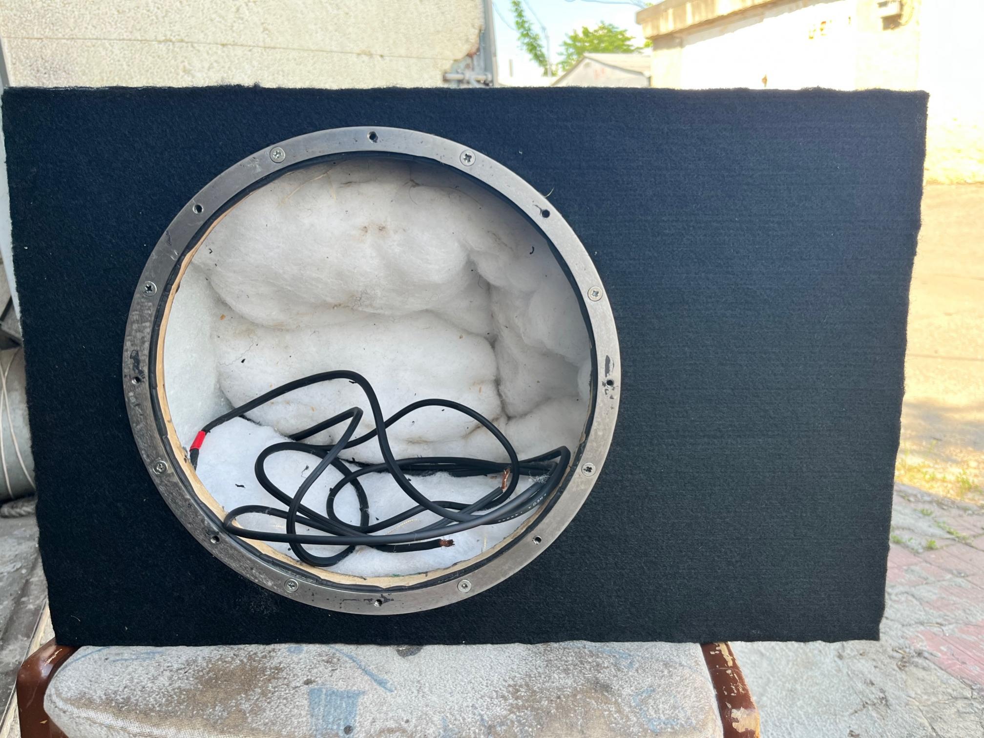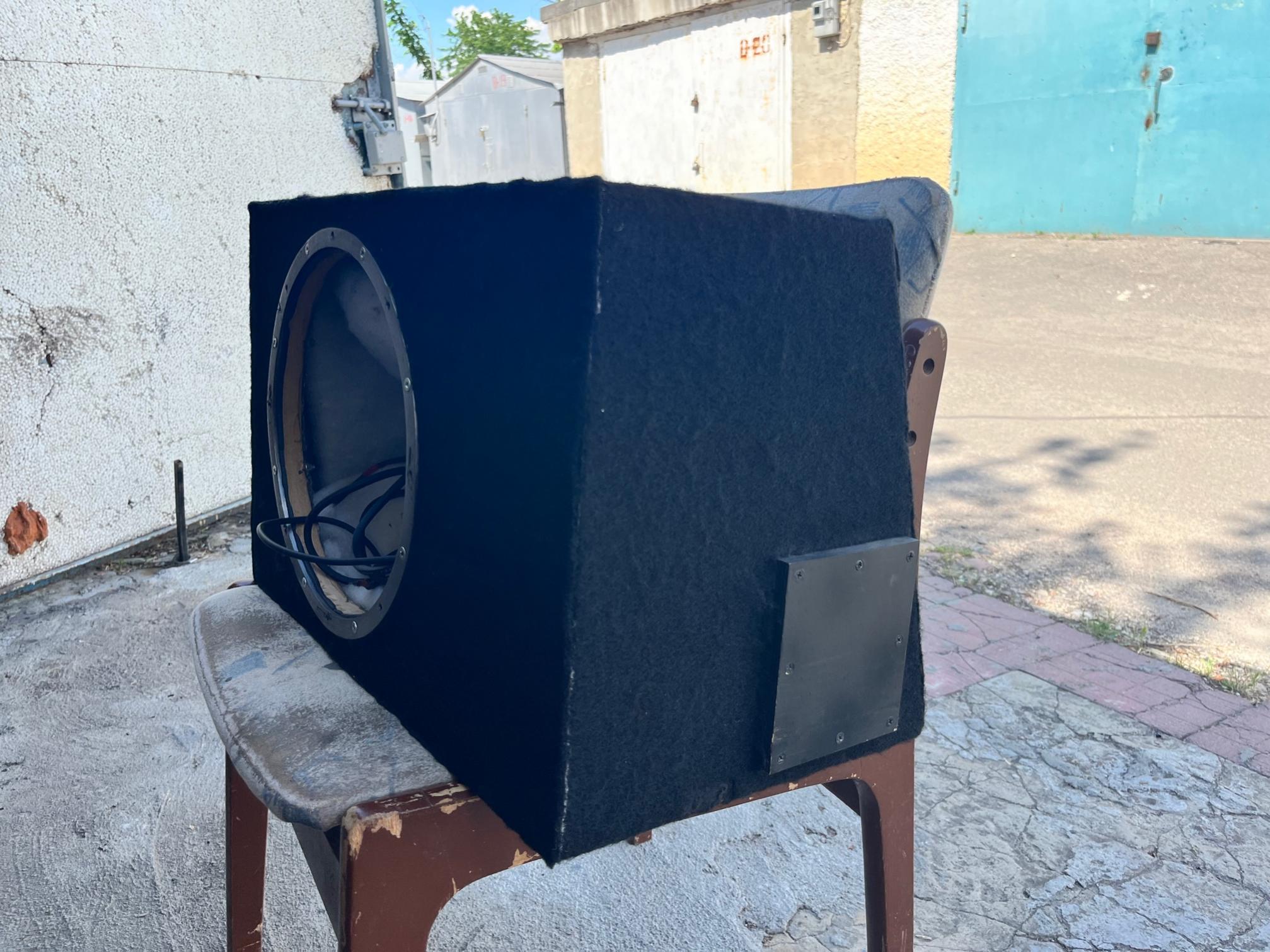 Продается ящик для абвуфера 12". Изначально изготавливался как ФИ, потом отверстие для трубы было закрыто (при жедании - заглушку, которая с левой стороны, можно снять). Чистый объем ящика 36,5л. С правой стороны установлен терминал, с возможностью подключения двухкатушечных сабвуферов. Сабвуфер прикручивается к металлическому кольцу, что очень удобно при постановке/снятии динамика и исключается повреждение винтами фронтальной стенки.