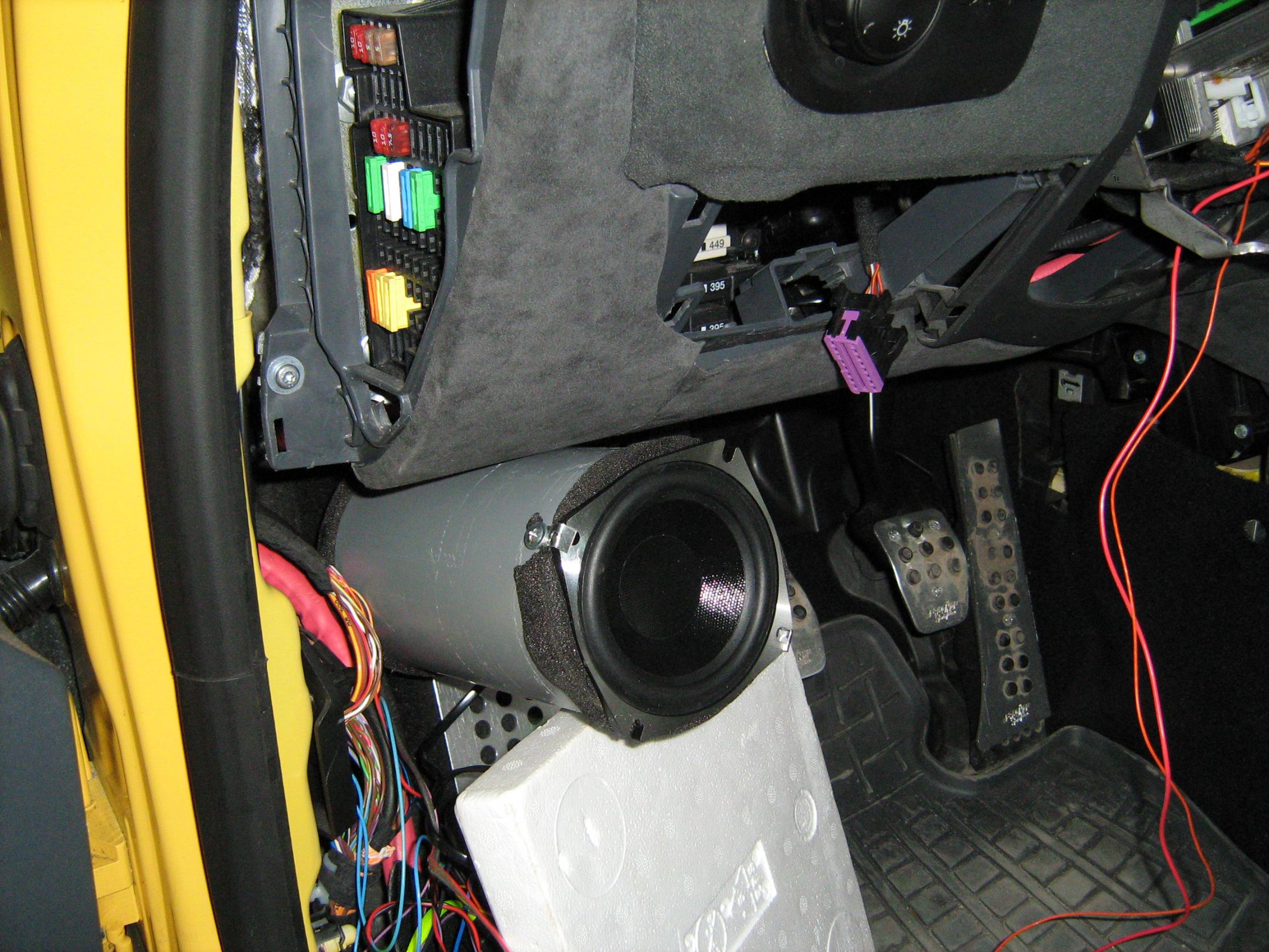 Закладная чашка от какого-то пища, метализированное кольцо под крепление самой пищалки болтиками, усиление стекловолокном крепления к штатной стойке, шпатлёвка и перетяжка в алькантару. СЧ - вариантов была масса, в зависимости от компонентов. И просто без подиума - через закладные язычки с резьбой под болт, и два или три (уже не помним сколько) подиума разной конфигурации, наклона и формы..... |