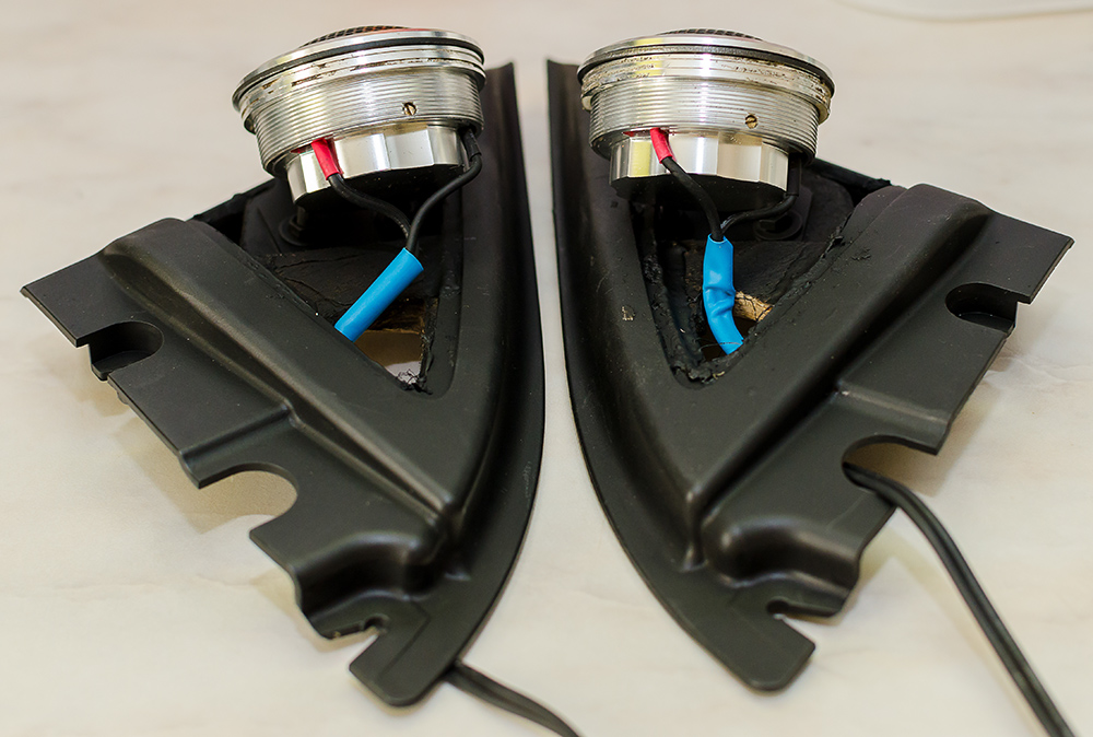 Вирішив таки заморочитись з заміною фронту. ВЧ зроблені текстильним способом на базі штатних кутиків дзеркал, які обтягнуті акустичною тканиною. Все максимально просто.