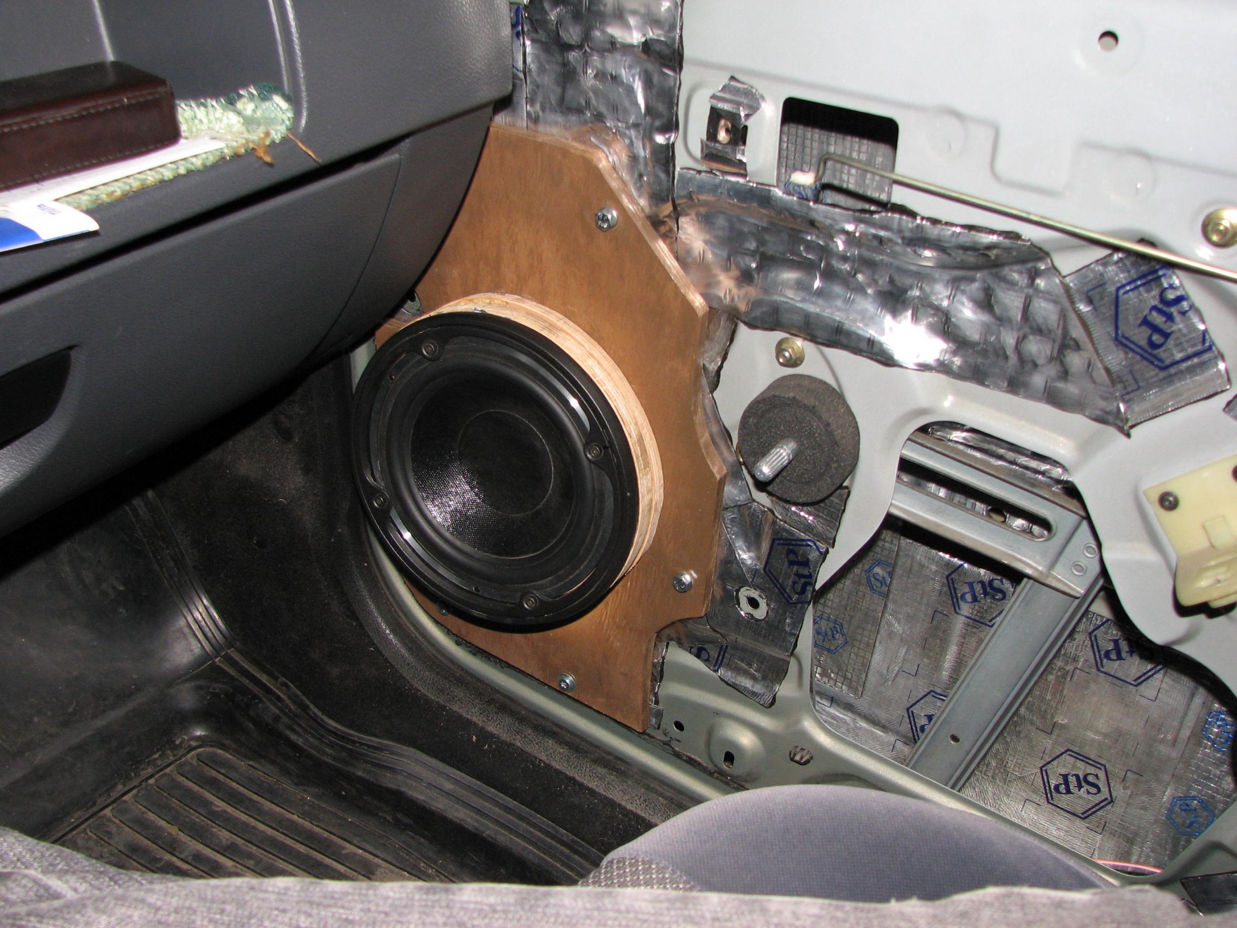я бы посоветовал, ваши подиумы с доворотом заменить на обычное фанерное колечко 16-20мм прикрученное непосрдственно к металлу двери, и послушать разницу, так как доворот не всегда есть хорошо, а некоторые довороты вообщее напрочь убивают звук