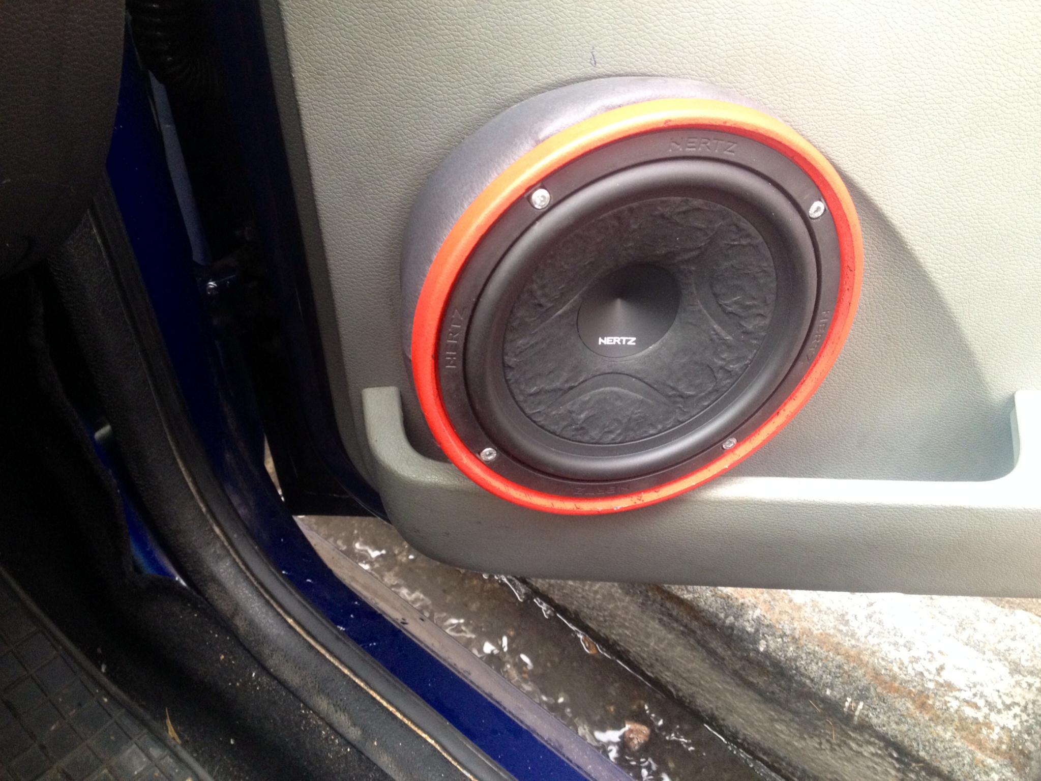 я бы посоветовал, ваши подиумы с доворотом заменить на обычное фанерное колечко 16-20мм прикрученное непосрдственно к металлу двери, и послушать разницу, так как доворот не всегда есть хорошо, а некоторые довороты вообщее напрочь убивают звук
