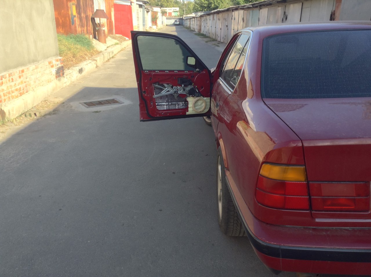 Теперь в двери будет стоять вуфер 16см. Первым делом была сделана виброизоляция двери - материал (шумоFF) M3, с нахлестом всё как надо. Далее из фанеры 18 мм - начинаем подгонять подиум. Процесс прост, делаем колечки - нижнее которое прилегает к металлу - максимально "старается" повторить форму металла. Далее всё это, по периметру промазывается смолой и пару полосочек - стекловолокна (на этих фото не запечатлил, делал так, что бы волокно выходило за рамки кольца и создавала большую площадь контакта). Форму - повторяет. Перед тем как ставить подиум на место, промазал его герметиком для сварных швов ( уж больно мне он нравится после застывания ) ! Нет тоннеля (что не может не радовать), дальше борьба с обшивкой. |