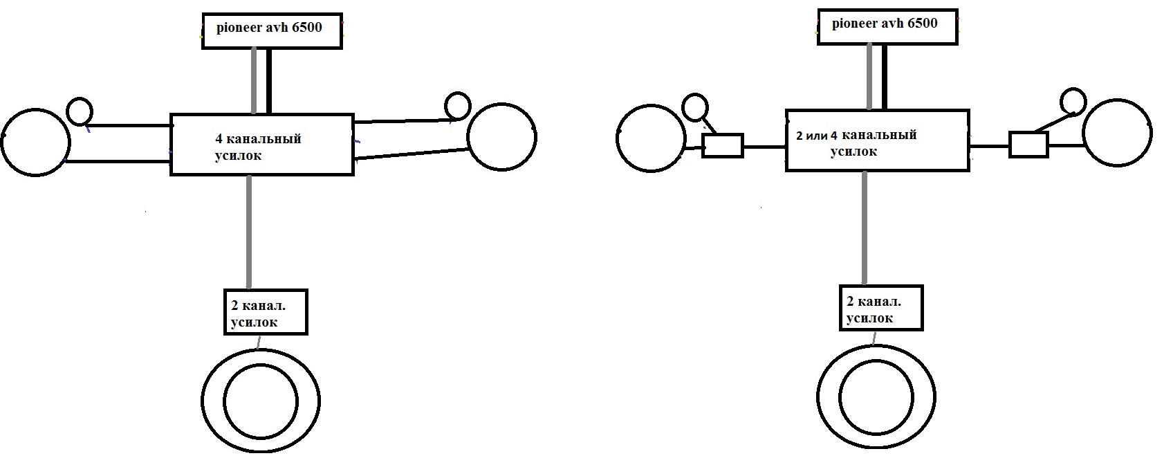 я думал что то вроде так подключить. есле что то неправильно исправте меня пожалуста... ато у P 6500 выходов много думаю должно было подойти.
