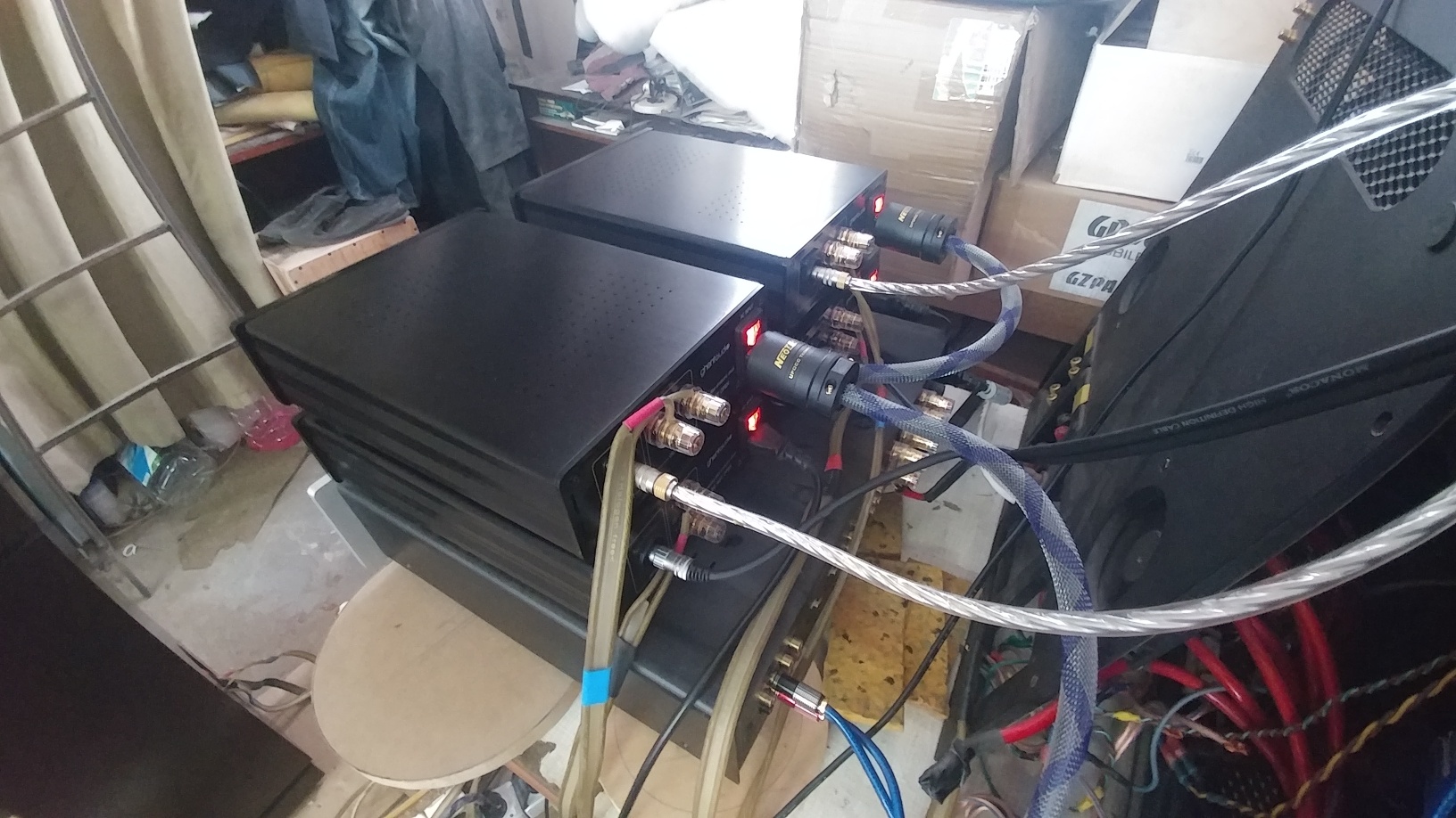 Твиттеры пока что не получили, но зато пришла 2-я пара моноблоков к проекту "Пирамида"... Конечно. интересно было включить их в эту систему "Satory."..ИТак, ВЧ - Classe CAP -150, СЧ - пара цифровых моноблоков, НЧ - пара цифровых моноблоков. Изменение в звучание заметили сразу все... звучание в СЧ диапазоне и в общем стало приятней, комфортней ..... Завтра продолжим настройку...прослушивание..Ну и ждем бериллиевые твиттеры...