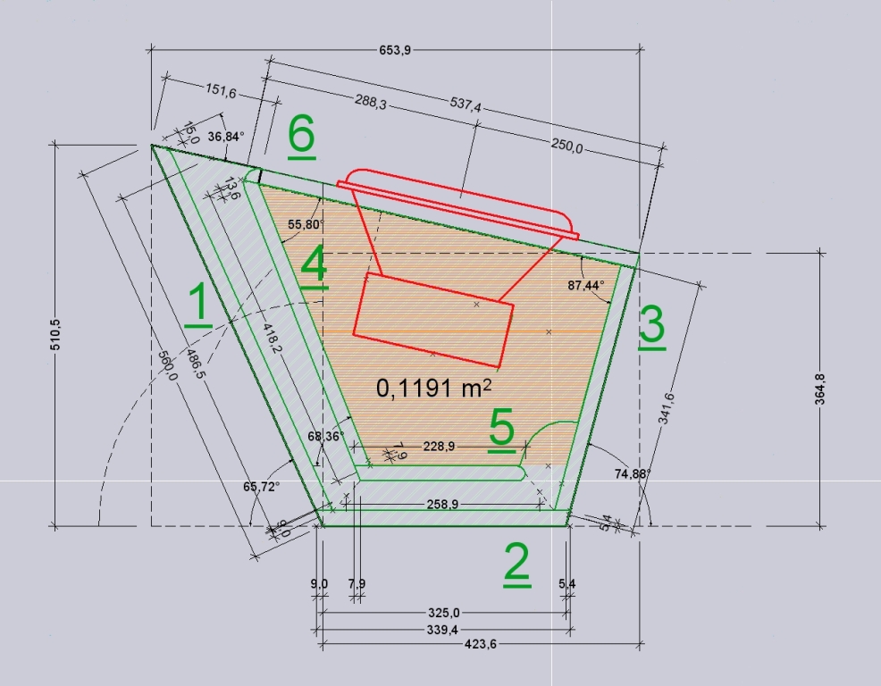 Примерка сечения коробки саба, надо было наити две плоскости. 1- угол наклона задней полки, 2- угол наклона задних спинок сидений |