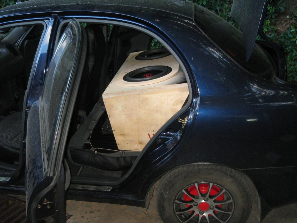 Примерка в рабочем положении. Ящик с сабами весит порядка 80 кг. и без помощи соседе по гаражу не могу его ни как поставить, благо что соседи у меня что надо...