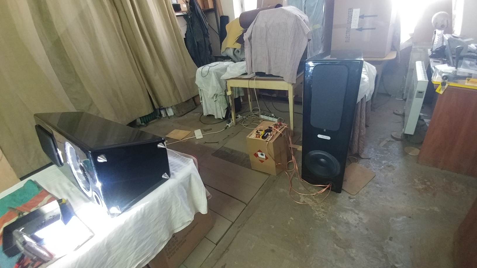 Ну что, пока местный народ достойно проводит праздники ( бухает и ест без ограничений!!))), мы решили подкорректировать пасскроссы в нашей ДЕМО акустике с целью улучшить фокусировку образов... Кроссы демонтировали и вынесли на длинных кабелях для удобства подстройки! Послушаем, а возможно ли улучшение????