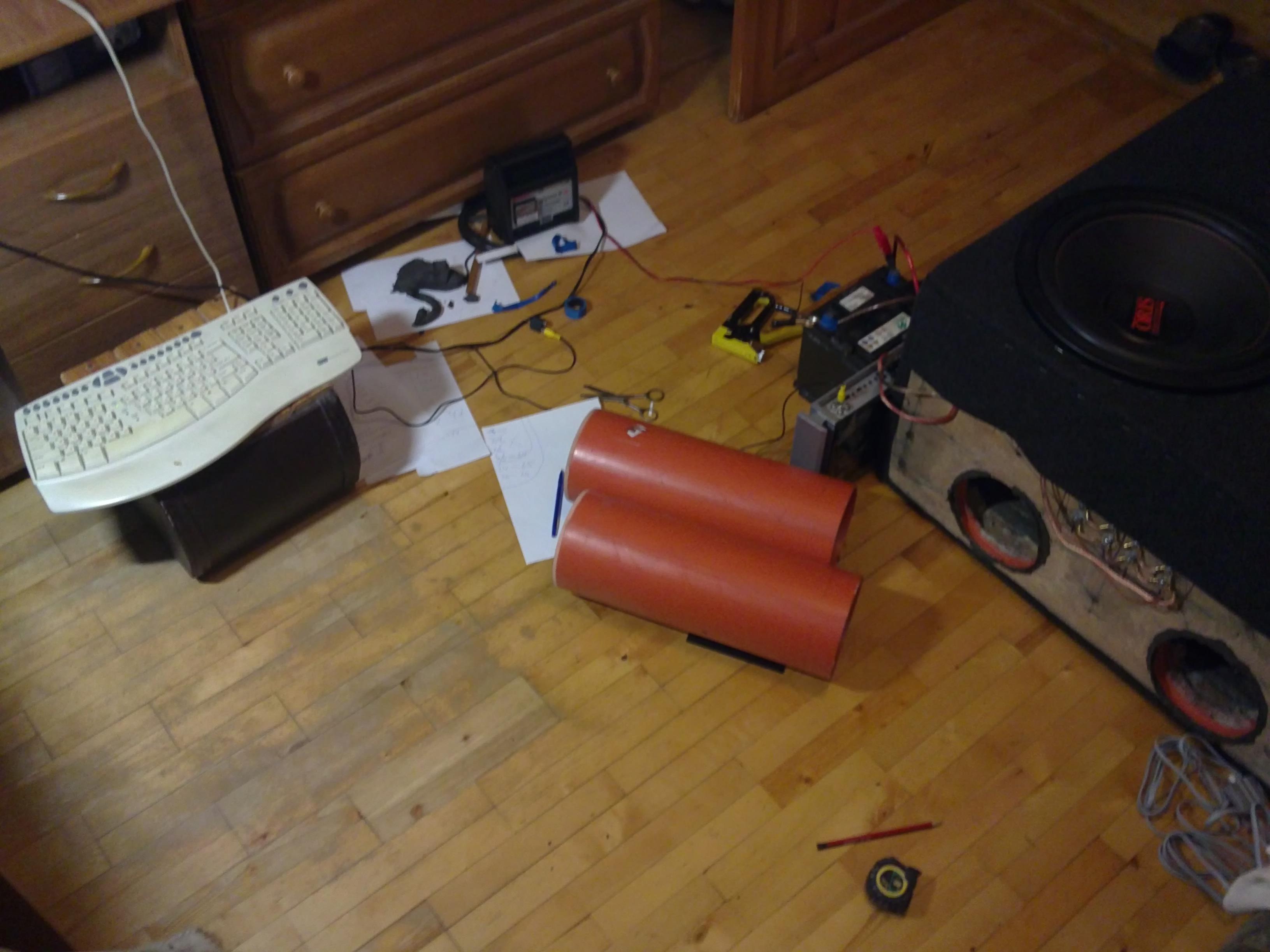 были фазики по расчетам, которые я уже приготовил по 57 см. после миллиона распилов длина фазиков осталась 24.5 см и настройка 27-29 герц. мерял полоской из бумаги. на всех трех частотах отклонение 0.9 см при прочих равных. на 26 герц и на 30 по 0.8. короче я в легком аху...ении как так?? когда брал широкую бумажку, и она была меньше радиуса, то максимальная амплитуда ее колий была на 20 герцах, хотя до этого я настроил фазик на 26 герц. потом заменил бумажку и все наладилось. оказывается есть разница какая именно бумажка: широкая, ее форма тоже имеет значение, делал в виде треуголника - тож не то. короче давит о -го-го .на максы ну врубал, соседи проклянут. завтрв хочу еще сантиметра 2 отрезать от каждого фазика. оказывается то, что я расположил порты на сомам дне сыграло свою роль...свечей только проверял результат.что меня еще удивило, так это то, что если правильно подобрать полоску из бумаги и правильно ее расположить, то амплитуда видно до виллиметров, а есил присмотрется, то и до 0.5 мм.правда, когда меряешь, создаешь рукой доп. споротивление потоку и есть небольшая погрешность.жду комментариев. |