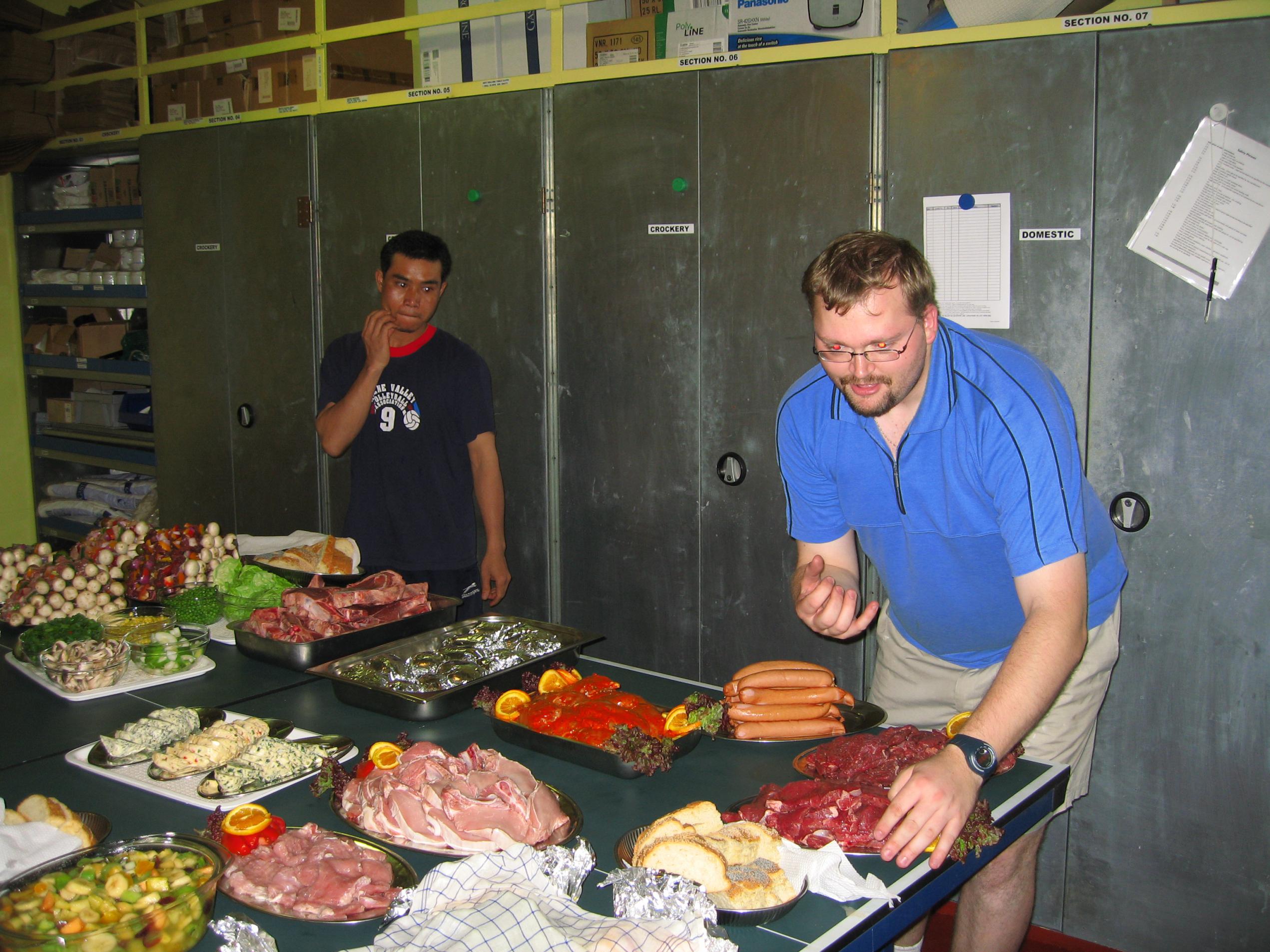 Это сейчас все выснилось а тогда с горевшего судна подняли на борт экипаж и 5 сомалийцев как позже выснилось пиратов со следами пороха на руках. Но когда втаскиваешь людей в 3 ночи с моря не думаешь об этом ! А шашлыки у нас регулярно .Кстати угли я сам и заказываю это как раз элементарно. Так же как и продукты -моряков надо кормить Хорошо .Ведь там нет выходных совсем ну может если капитан разрешит неофициально так сказать. Фотки добавлю что бы окончательно не оффтопить и все. Good Day, Please be advised that Maersk Beaufort during the night has been engaged in a rescue operation. The operation was rather tricky, as it took place at the southern end of the Red Sea, i.e. in pirate infested waters, but the whole operation was carried out in close cooperation with the UK Royal Navy. In total 22 persons (Egyptian, Syrian and Somali nationals) were taken off a burning live stock carrier. For security reasons, the Somali nationals are kept under lock in the Suez room and the others in the Gymnasium, with crew standing guard - this being pirate infested waters and no chances being taken. The vessel is now proceeding north through the Red Sea. The Master is now gathering the required data from the Syrian Master of the rescued crew. |