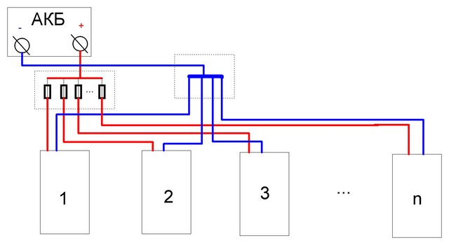 Схемы соединения потребителей "Звездой" уместна только лишь при трехфазном источника питания переменного тока и Вячеслав Меркулов здесь прав. В электроустановках есть три основных схемы электроснабжения: - магистральная (применяется в осоновном в электрических сетях переменного тока выше 1000В). Схемки накидал применитеольно к теме автомобильной силовой проводки. - радиальная Та о которой писал шановный Воликов. Плюсы очевидны. Минусы - большая стоимость по отношению к магистральной. - смешанная Самая применяемая в электроснабжении в т.ч. автомобильной электропроводке, т.к. является "золотой серединой" между ценой и надежностью. Включает в себя и плюсы и минусы двух предыдущих схем. Что до конденсатора, то от того что он есть хуже никому не будет. Даже если он кЕтайский (лишь бы не тёк). А вот необходимость в нем уместна тогда, когда ближайший усилитель к тому который вы подператете (хотите подпереть) емкостью находиться ближе чем АКБ (т.е. сопротивление проводки между усилителями меньше чем между усилителем и АКБ) - в этом случае усилки будут кушать амперы друг у друга - про это уже писалось не раз, и шановным Воликовым в т.ч. Кактатак