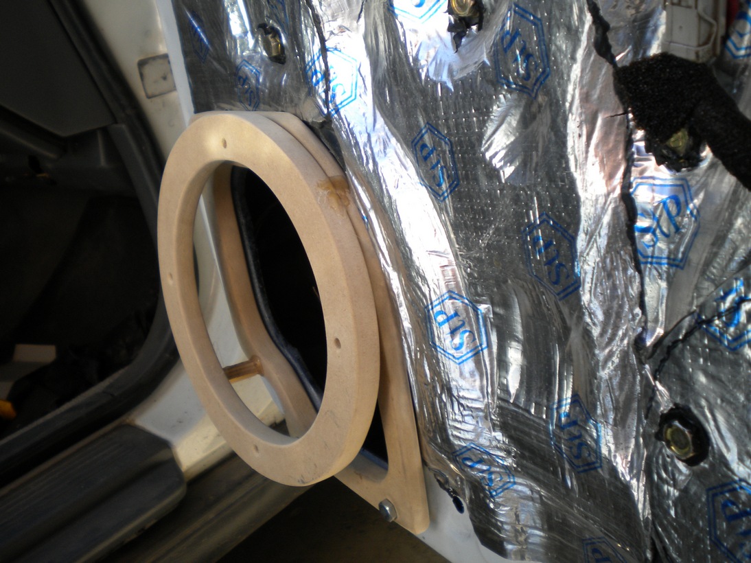 Вырезал колечки под динамики и проставку на дверь. приклепал резьбовые заклепки