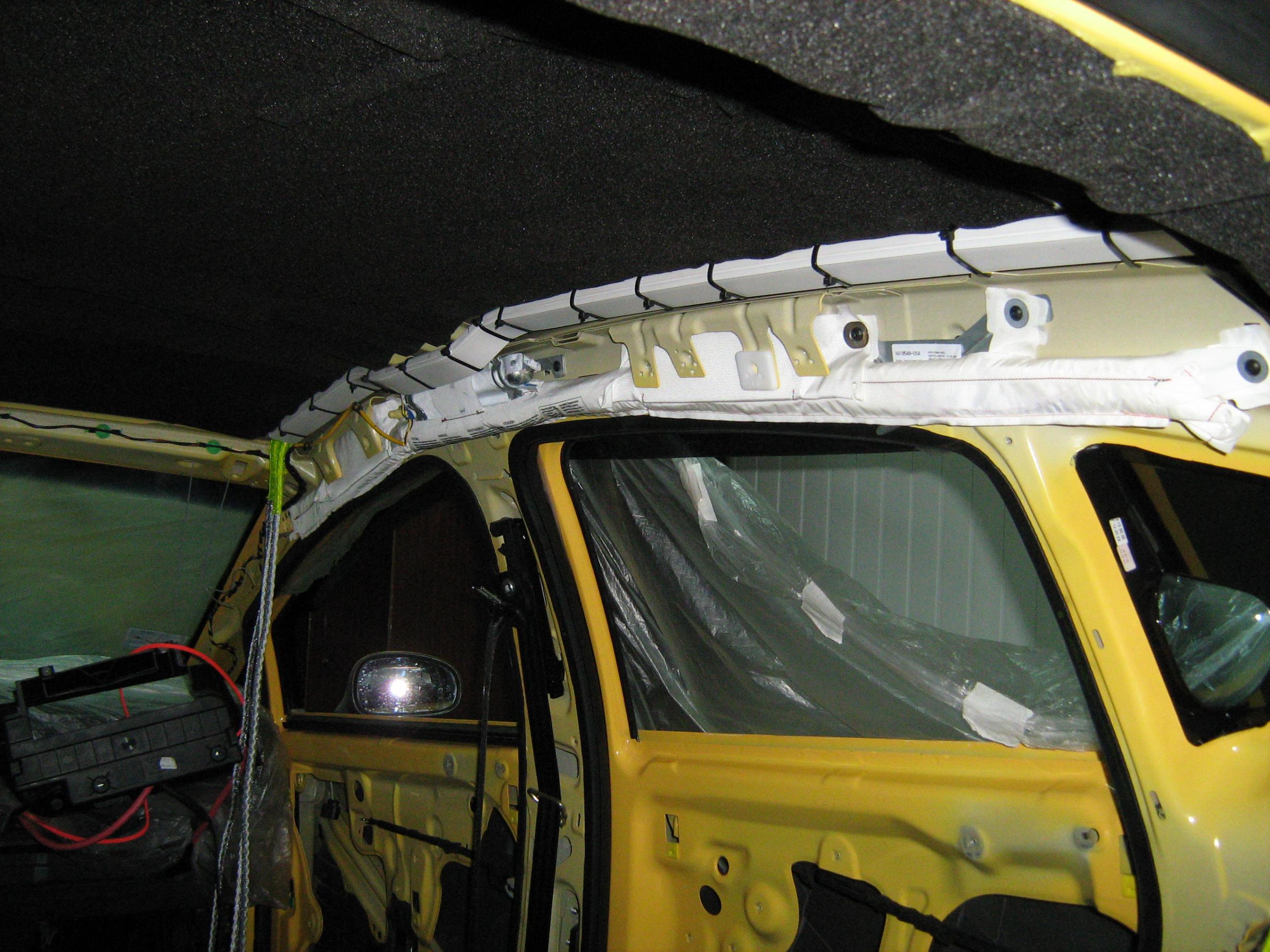 Принцип тот же что и при прокладке силовой - максимальная защита, заделка, крепление..... Изначально планировалось акустичку тянуть по крыше - левая и правая сторона соответственно, те же пластиковые кабель-каналы. Острые кромки в местах прохода закрываем резиновыми уплотнителями. |