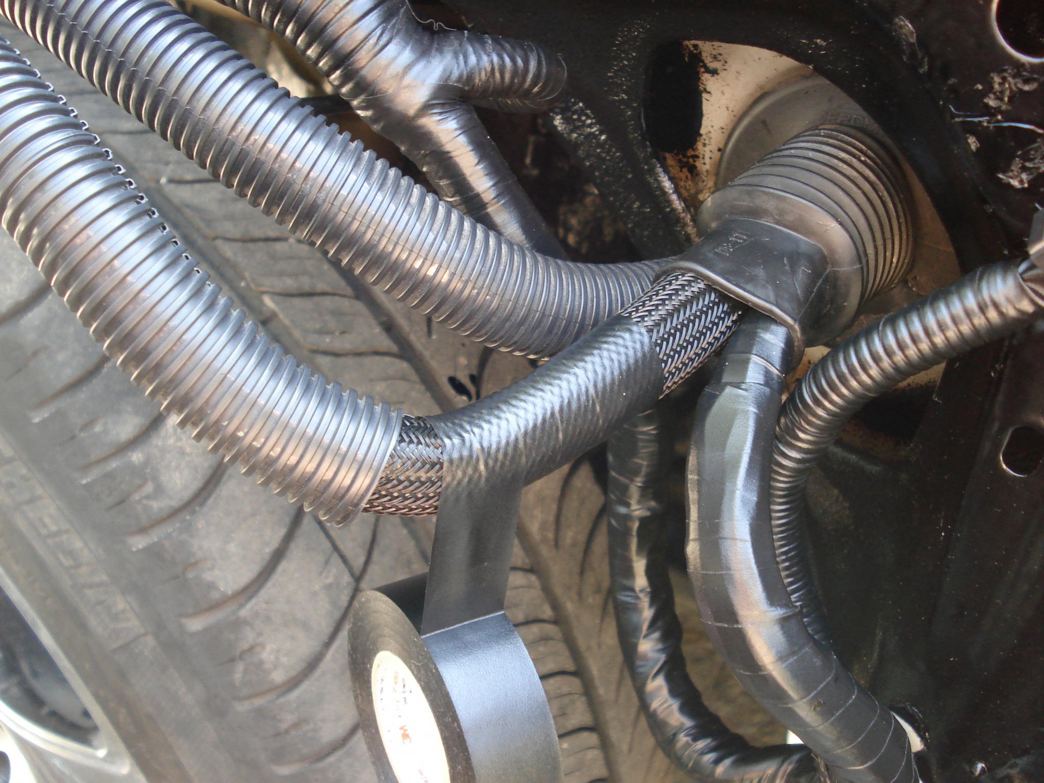 Ну и потом надеваем гофры, заматываем, укладываем по месту.