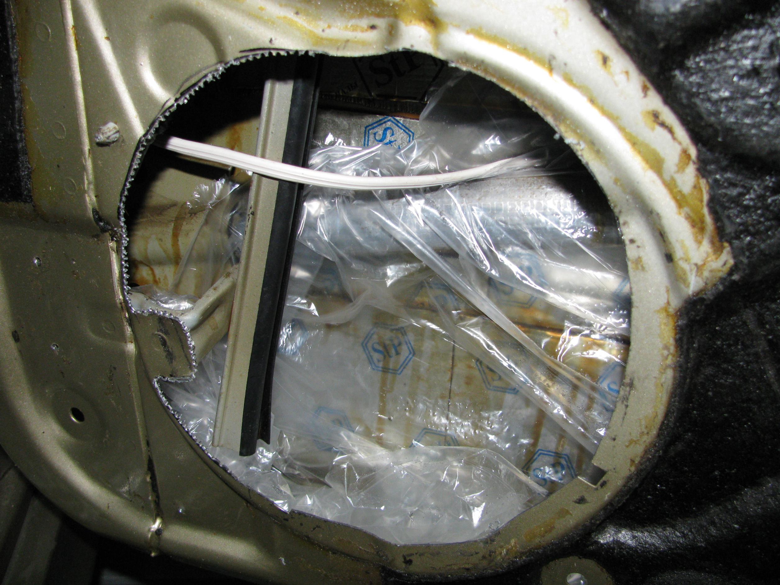Двери еще не закончены, но поскольку про них заговорили,расскажу о процессе. Для начала определил на сколько смогу увеличить отверстие под динамик...