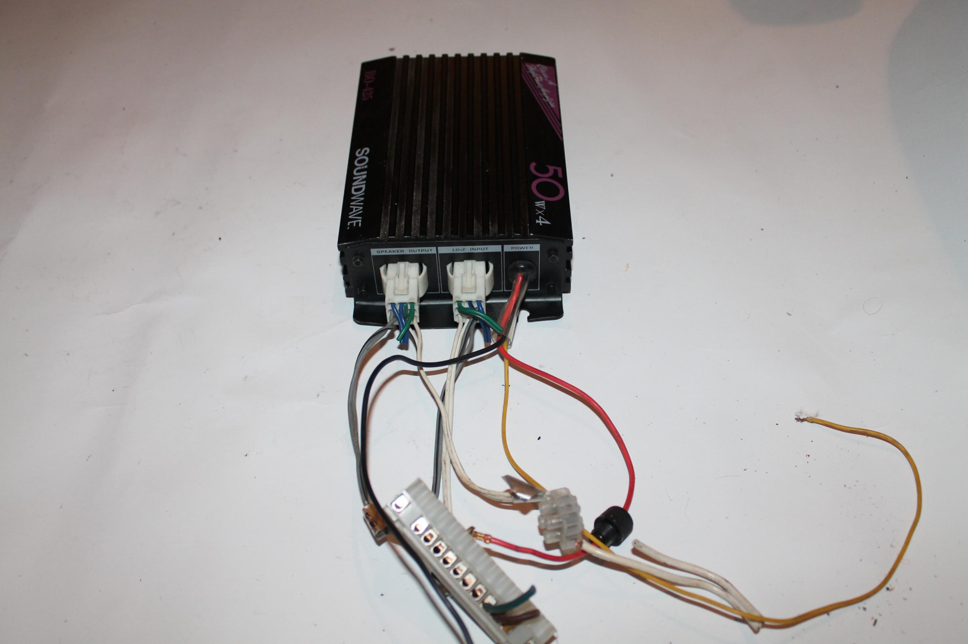 Усилитель на микросхемах, небольшой мошности, 4 по 25, размер как пол магнитолы.