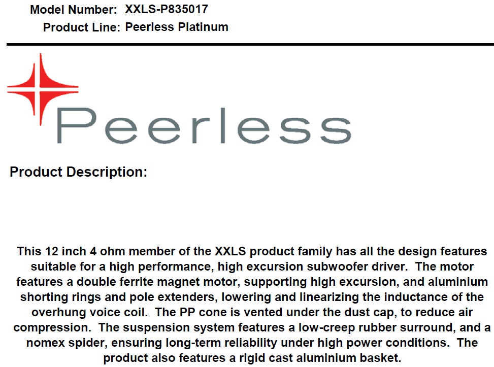 "В Ultimo используются уникальный гибридный бумажно-карбоновый композитный диффузор, который является комбинацией музыкальности и громкости, что делает пригодным использование сабвуферов не только в аудиосистеме высокого уровня, но и в соревнованиях по максимальному звуковому давлению."