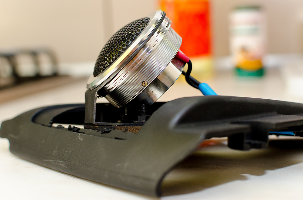 Вирішив таки заморочитись з заміною фронту. ВЧ зроблені текстильним способом на базі штатних кутиків дзеркал, які обтягнуті акустичною тканиною. Все максимально просто.