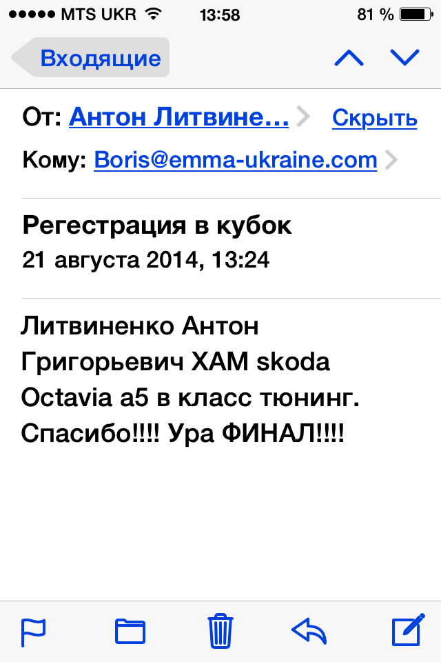 ![]() Первый зарегистрированный на Финал - Юров Сергей, Минск. ![]() |