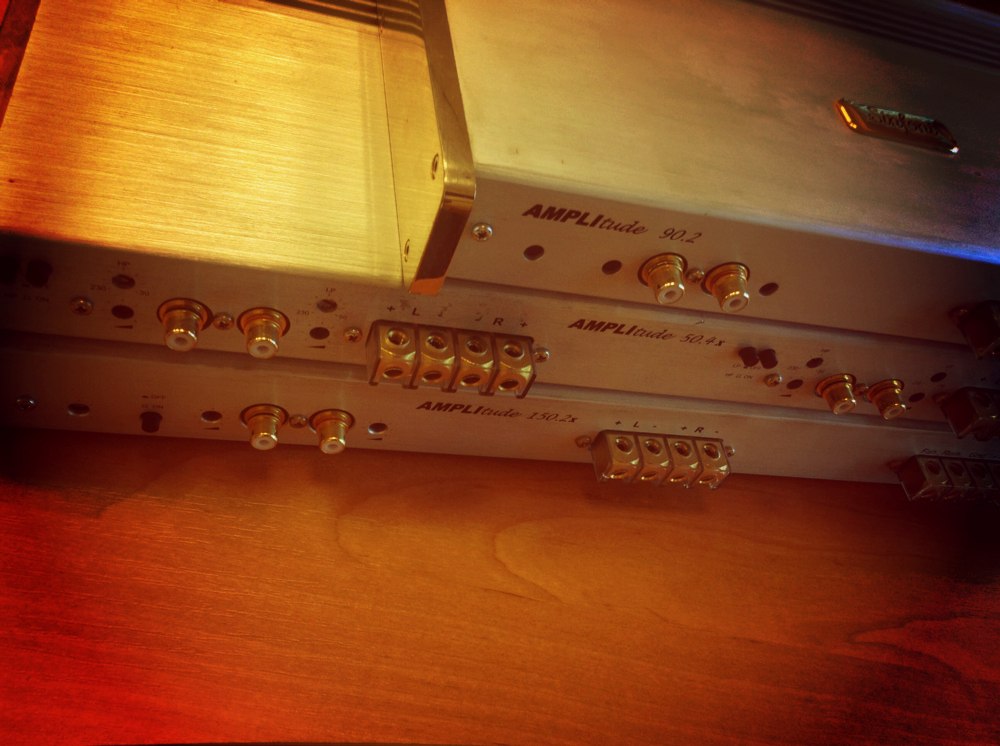 Нужно открыть потенциал "динозавра" - это главная задача. Казалось бы, усилитель.... такое простое устройство, есть сигнал на входе и он слабенький, а задача усилителя просто его усилить и сделать это не изменяя исходник. Выбор пал на Итальяшек Взял себе "трёх богатырей" все, под именем Sinfoni. Ну и вдруг чего не понравится, в загашнике есть Steg, который вдруг чего- выручит. Первый усилитель на ВЧ и СЧ, четырёхканальный Sinfoni amplitude 50x4. На вуферы второй усилитель Sinfoni amplitude 90x2. На сабвуфер будет в мост Sinfoni amplitude 150x2. Тот, который 90х2 более малых размеров (на фото видно). С двух больших - крышки отдал на полировку, хочу что бы блестели ! Рад как слон пылинки сдуваю, быстрее бы до установки добраться. (про их любовь становится "горячими" знаю, будет принудительное охлаждение). На один положил нож - оцените размеры, а весят ещё больше ! |