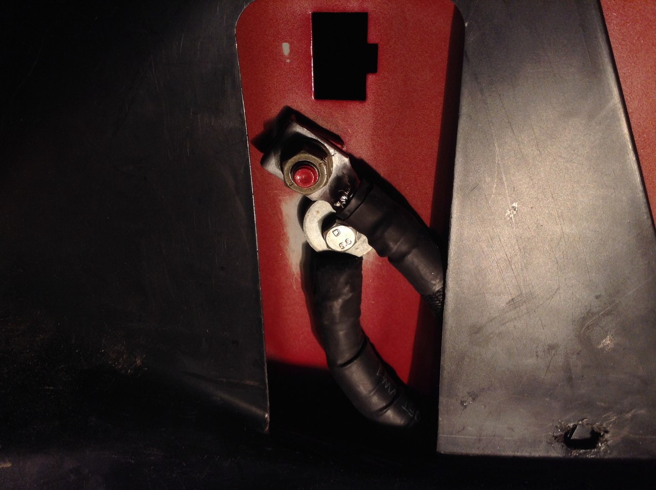 Проход кабеля через тех.отверстие защищен, ну и два болта для ОЕМ и дублировнного минуса. |