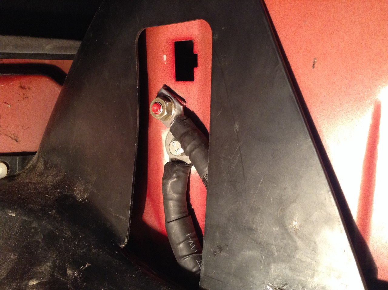 Проход кабеля через тех.отверстие защищен, ну и два болта для ОЕМ и дублировнного минуса. |