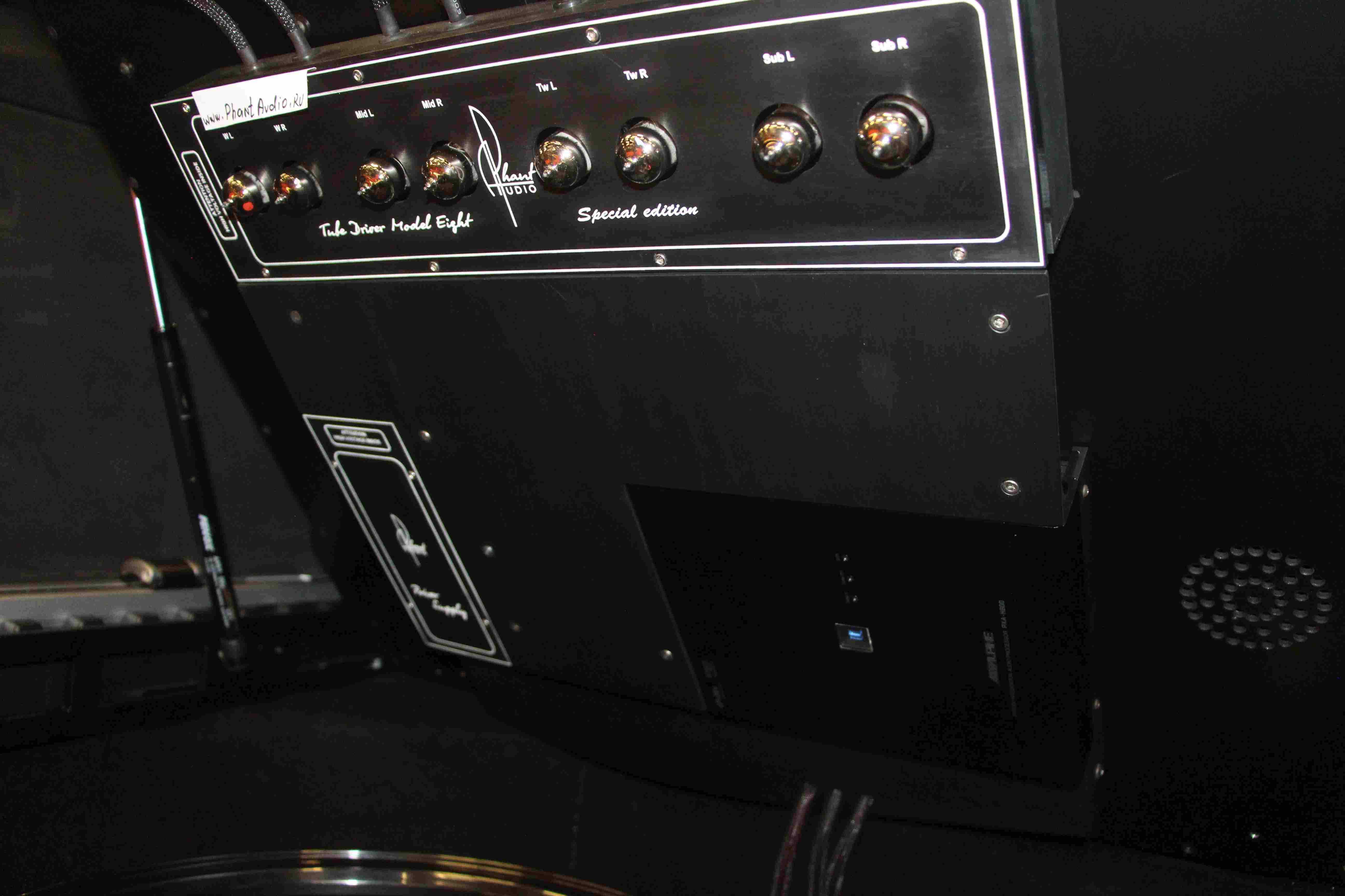 Нереальный инсталл, очень оригинальное решение по стойкам - ВЧ утоплены заподлицо, вся стойка обтянута акустически прозрачной тканью. Выглядит как полный СТОК с завода ![]()