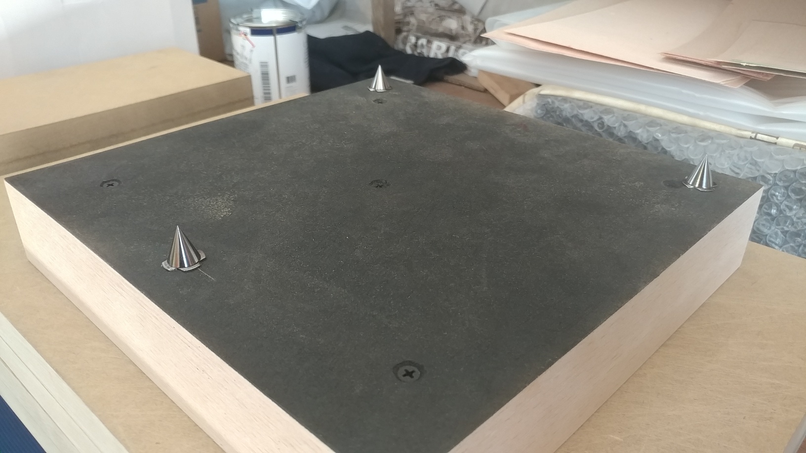 Двигаемся дальше...основные несущие панели уже зашпонированы , наносим покрытие. Начинаем изготовление развязывающих оснований под аппаратные блоки, каждое из которых будет установлены на конусы....