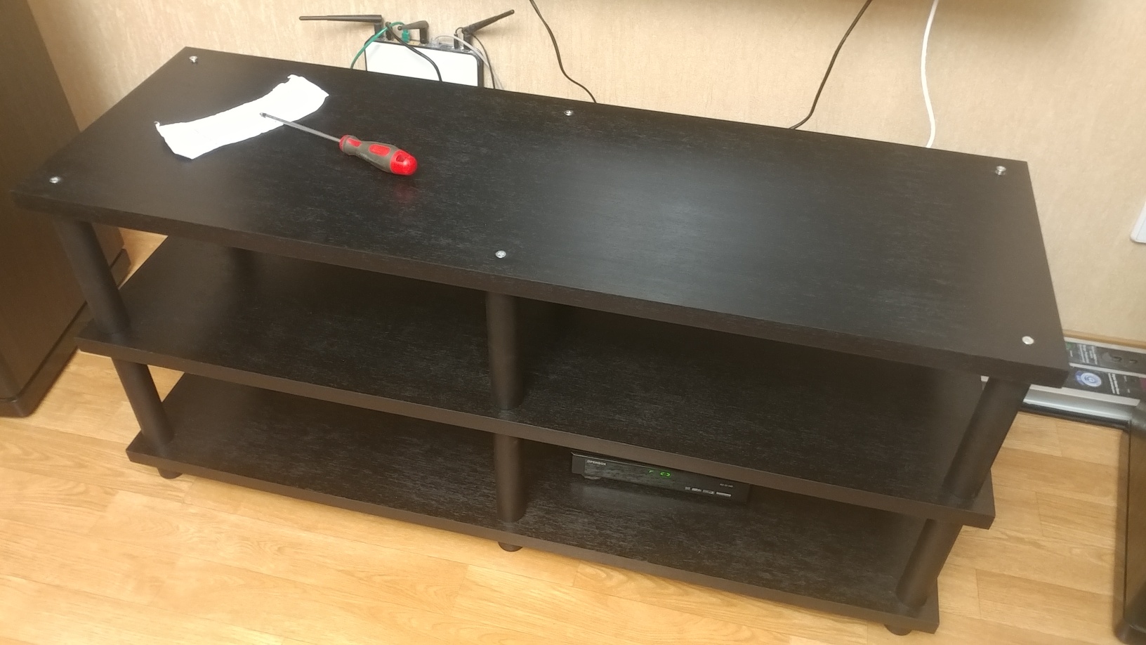 Итак, детали из МДФ скреплены и готовы к шпонированию. Шпонирование начали... Металлические опоры подготовлены к покраске. Смоделировано примерное размещение узлов... Все нормально...