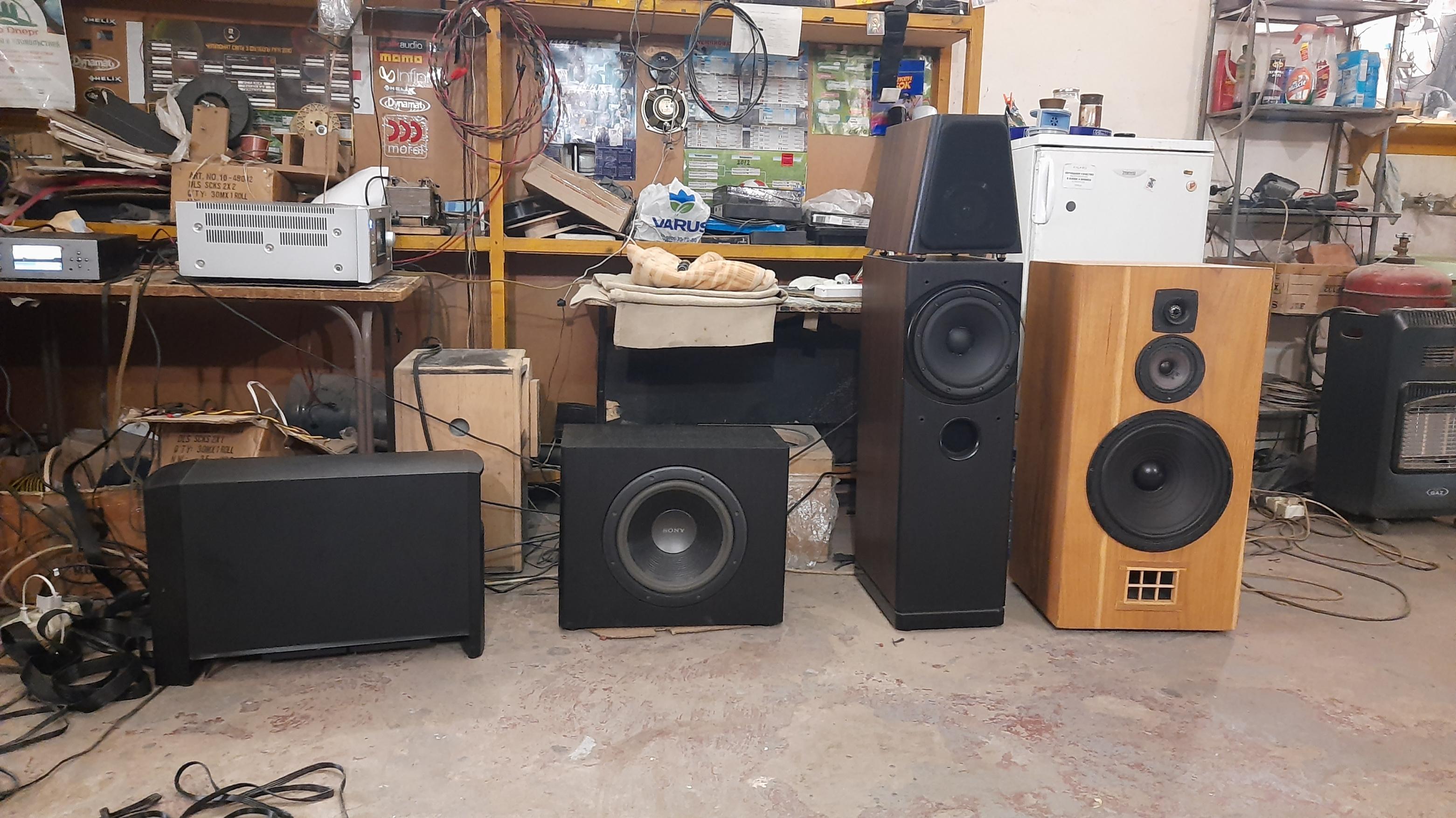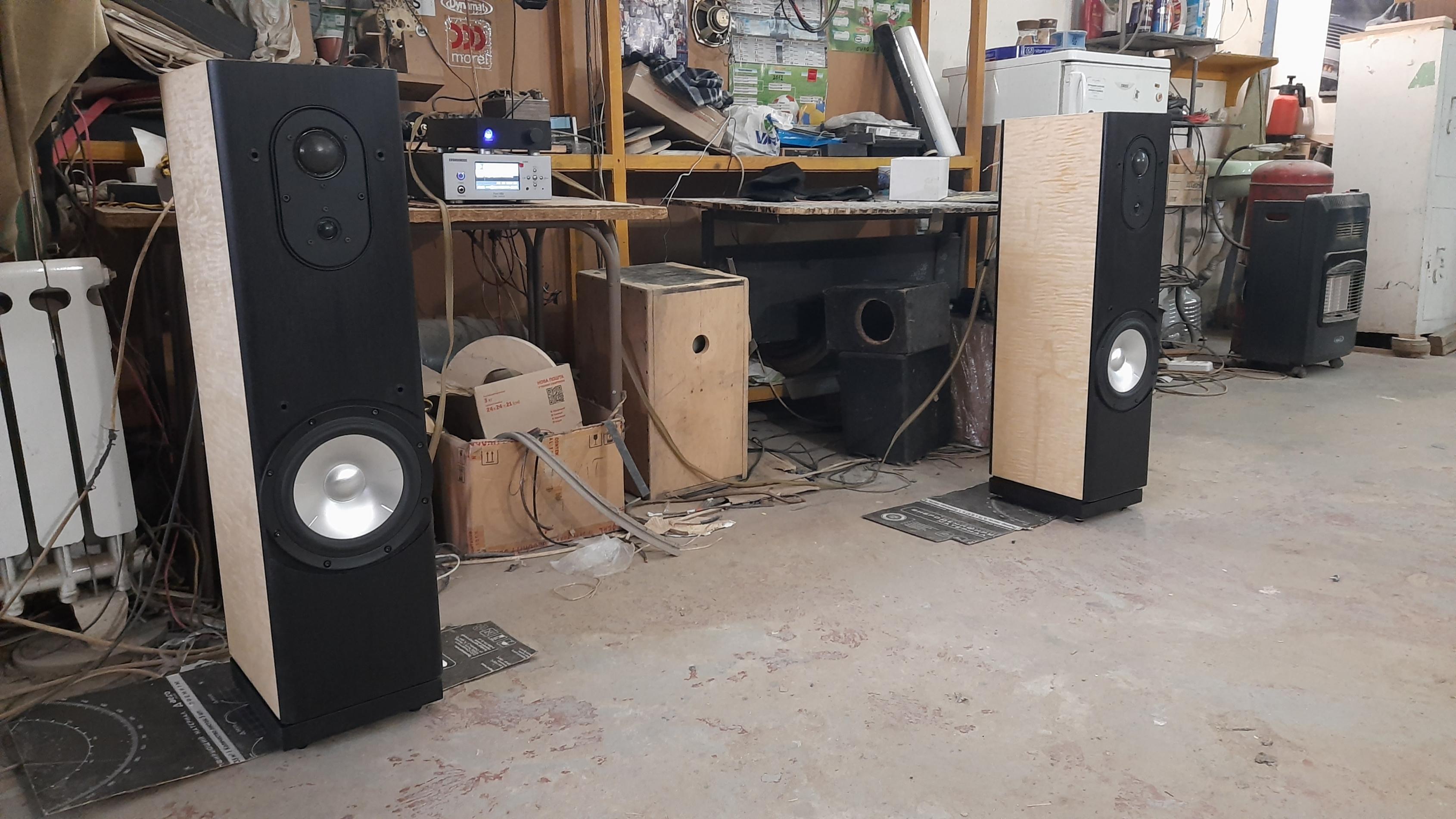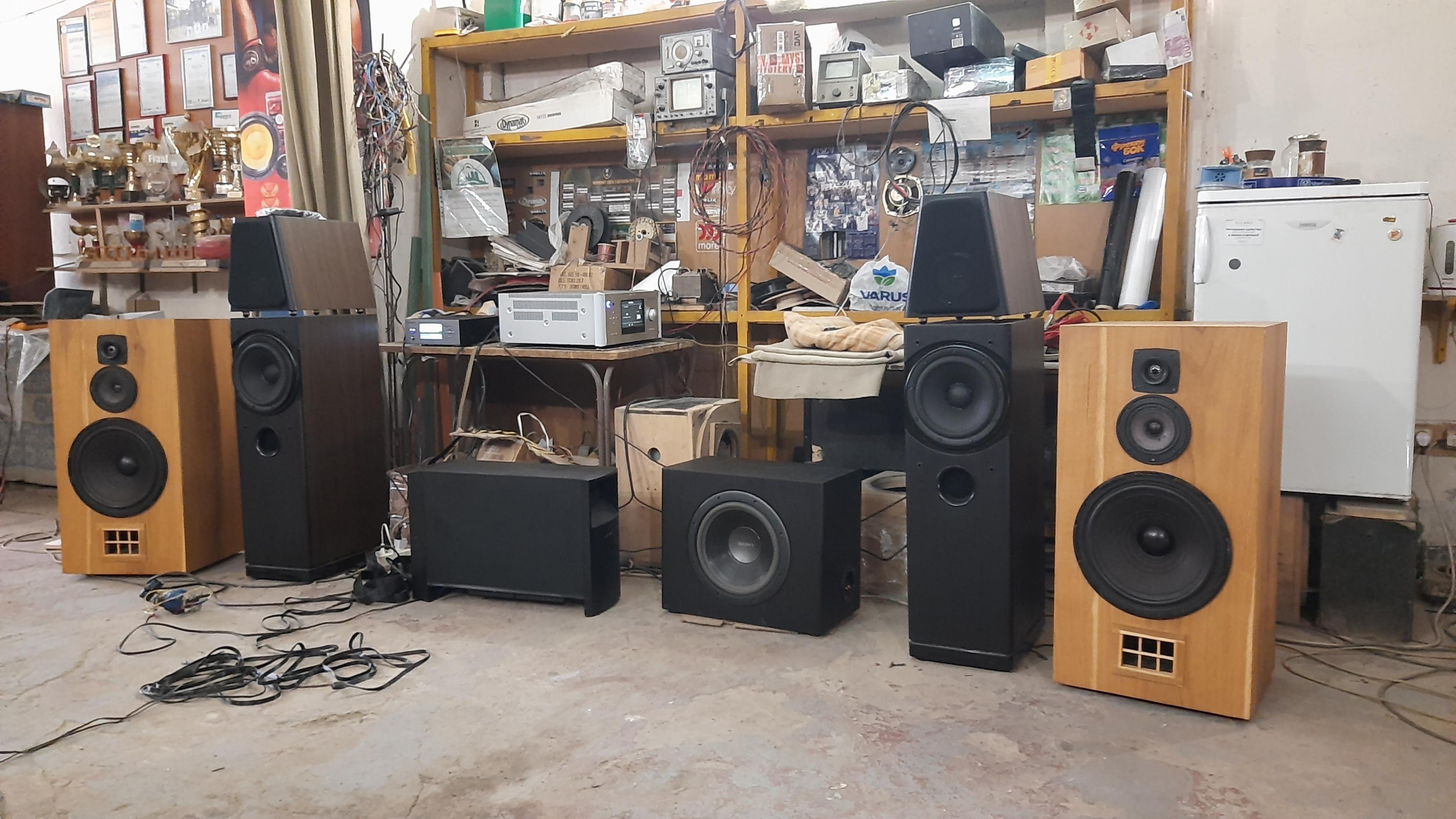 По согласованию с клиентом модернизировали НЧ блок наших АС Tower. Очень удачно..... Возможно использование в домашнем кинотеатре, поэтому добавили саб, И тут случайно другой клиент попросил прослушать, протестировать и по возможности отреставрировать авторские АС на базе советских динамиков ( 100ГДН и др.) Интересно было услышать и сравнить в одинаковой обстановке и обвязке. АС сделаны добротно, прочно ( внешнее оформление на любителя... ).Прослущивали только АС , без саба , естественно. Ну и первое, что услышалось...они ЗАМЕТНО громче играют, создают ощутимое звуковое давление... Напомнили мне....эстрадное ( ресторанное ) звучание))). Собственно, далее сравнивать было нечего...бас не глубокий....думаю не ниже 50Гц, фокусировка никакая, ну и т.д...Да и сравнивать было не корректно, цены на АС отличаются раз в 5 , а то и более раз... Их назначение, на мой взгляд, озвучивание помещений...для чего их, собственно, нам и надо подготовить...